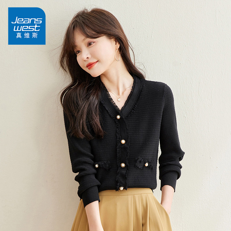 KP真维斯小香风针织开衫长袖外套外穿毛衣女韩系纯色设计感针织衫