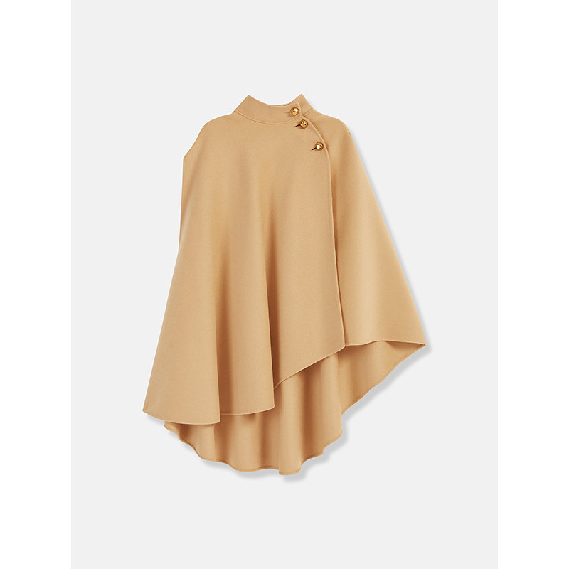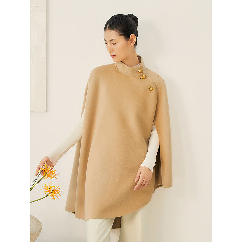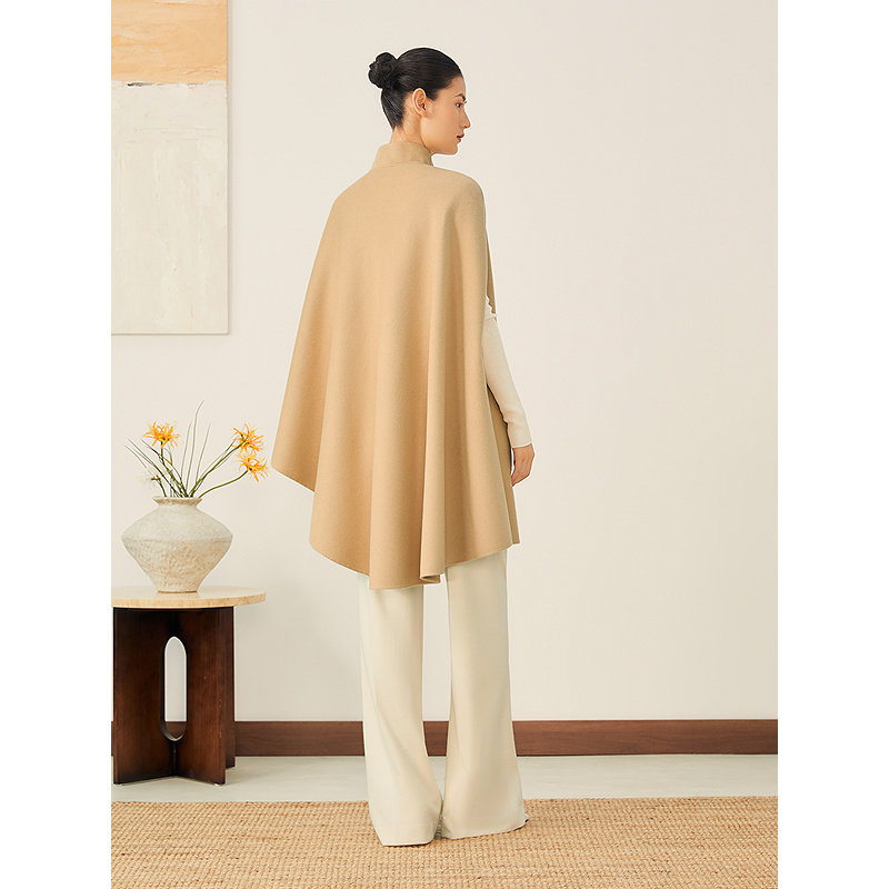 YINER音儿2025秋季新款法式立体裁剪羊毛羊绒混纺斗篷式外套