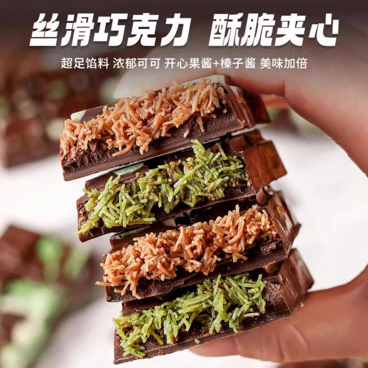 迪拜风味巧克力开心果夹心丝官方旗舰店代可可脂手工黑巧面包果酱