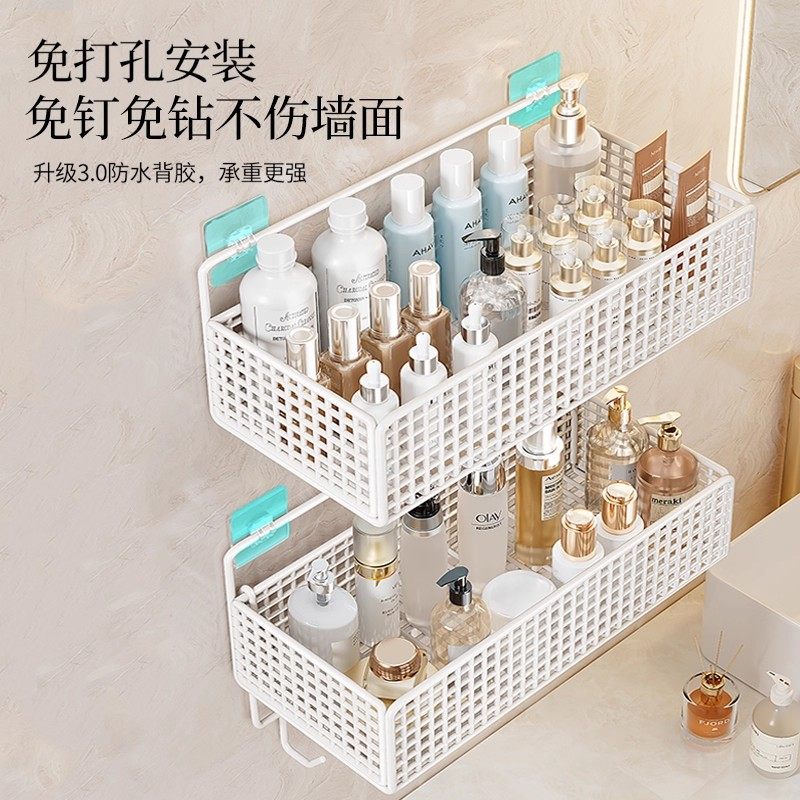 浴室置物架卫生间洗漱台化妆品收纳免打孔壁挂厨房墙上调料收纳架