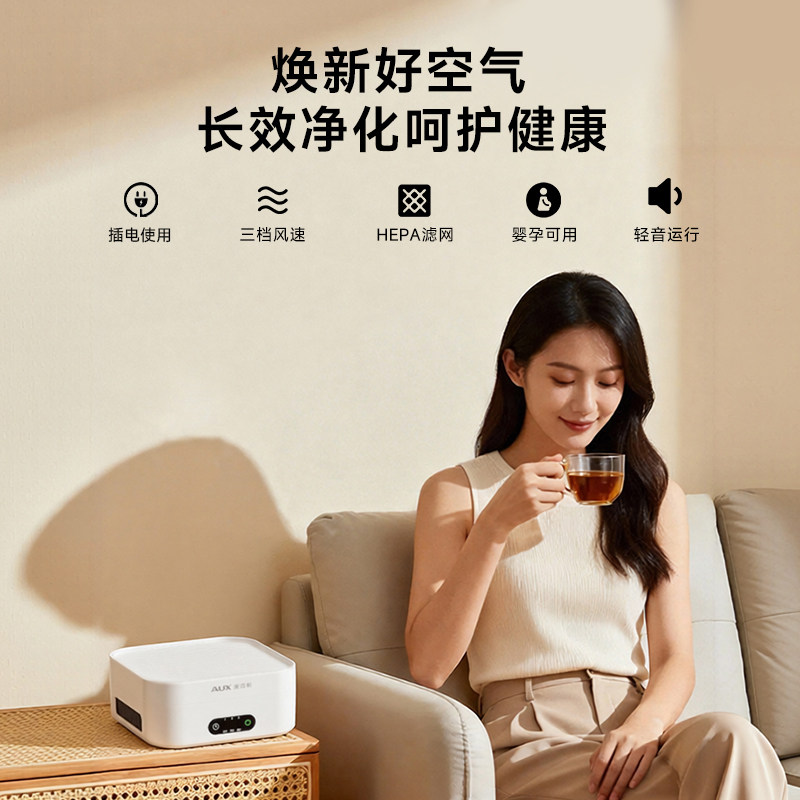 奥克斯空气净化器家用除甲醛桌面小型净化机办公室除烟味异味灰尘