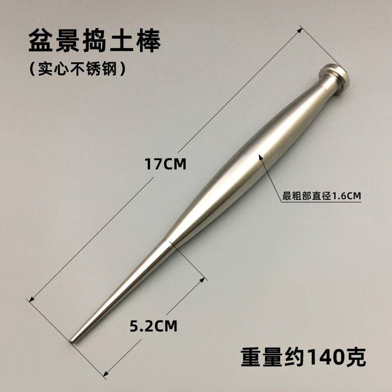 实心不锈钢盆景捣土棒盆栽多肉换盆理根梳根器松土压土棒园艺工具