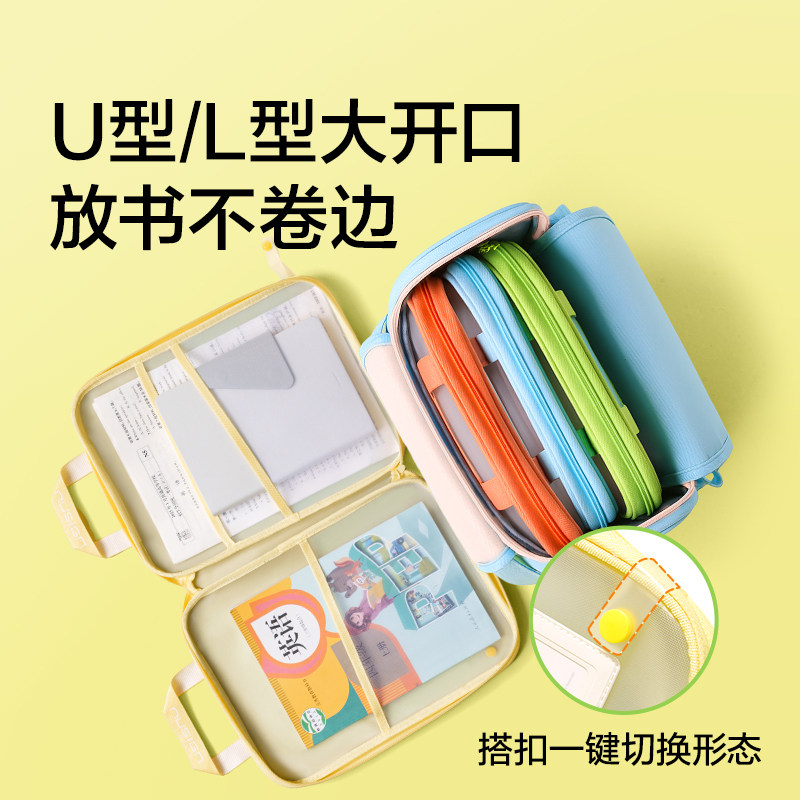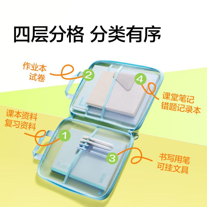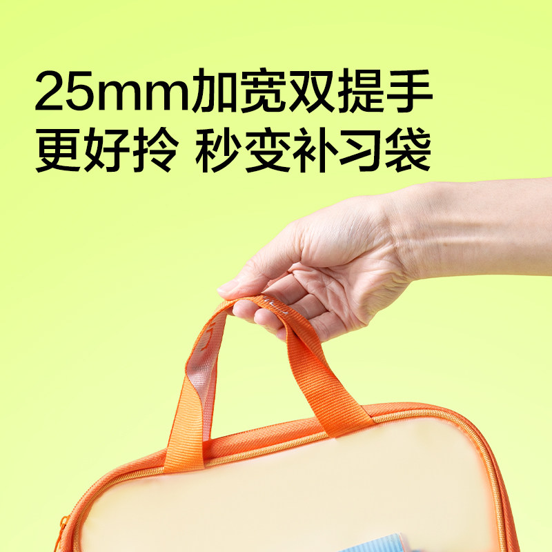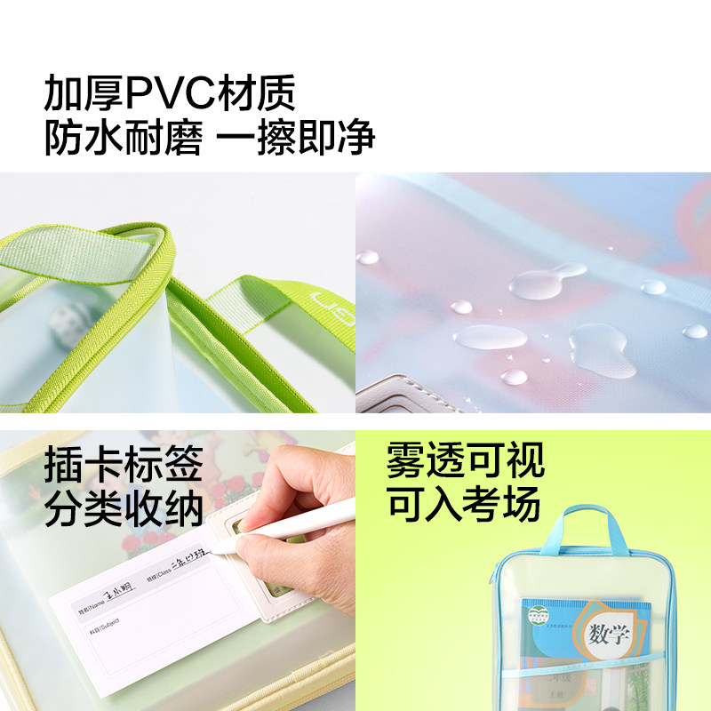 得力学科拉链袋小学生科目分类袋U型A4文件袋一年级入学书袋高颜值手提装笔袋拎书袋自习包补课包收纳袋透明