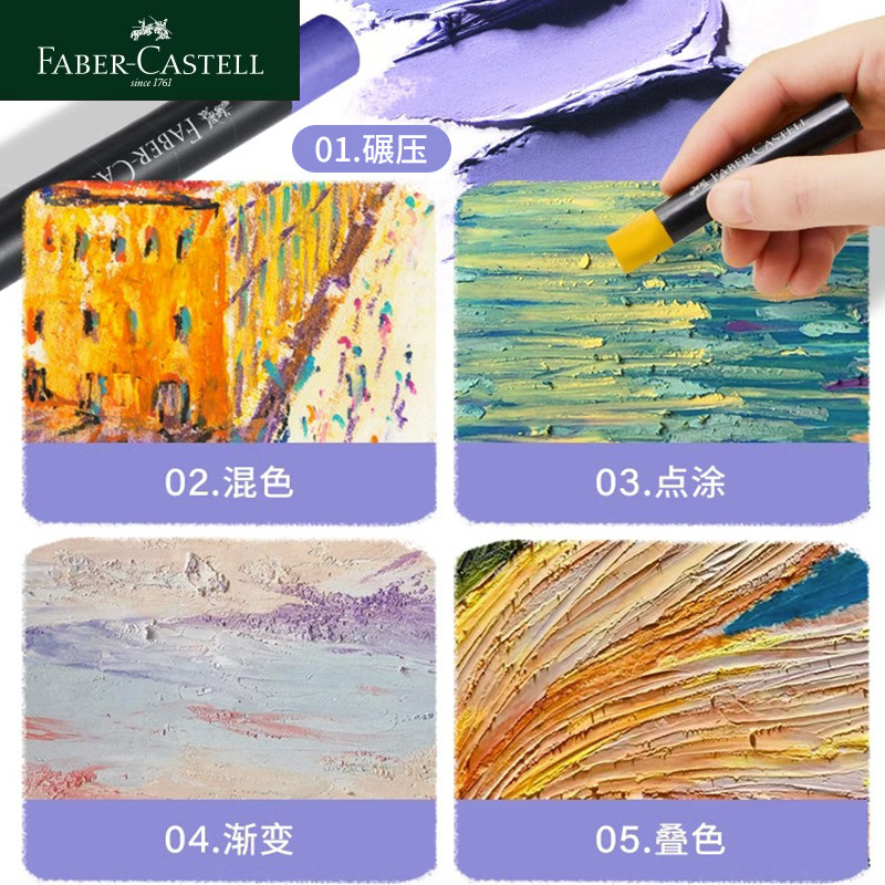 德国辉柏嘉重彩油画棒套装36色24色马卡龙学生美术生专用绘画专业级软性涂鸦白色蜡笔油性水溶性刮刀专用纸