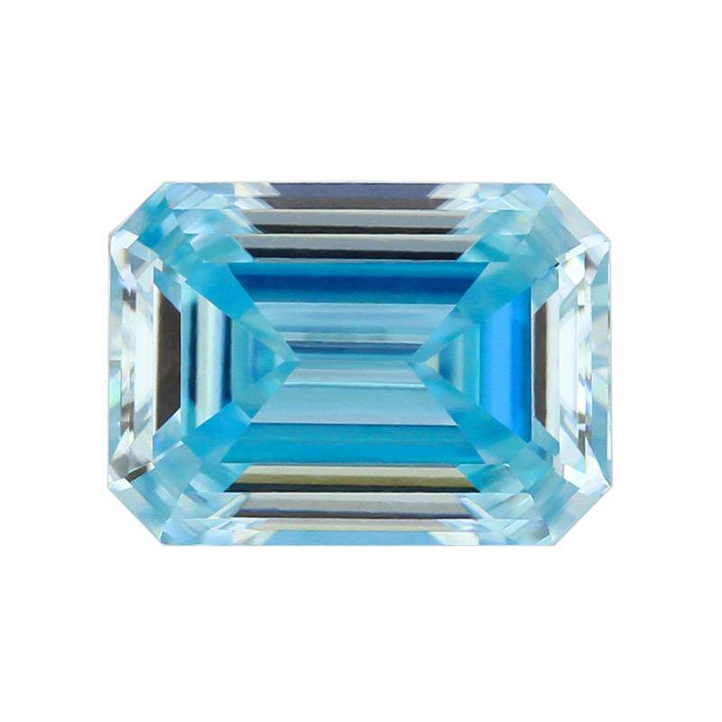华港宝石 祖母绿切割海蓝色莫桑石裸钻 长方倒角车平人造戒面主石