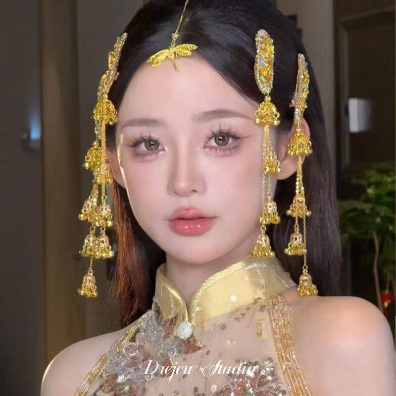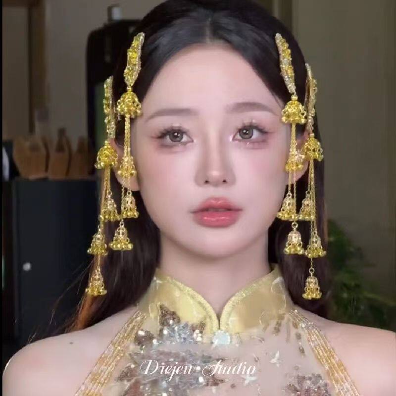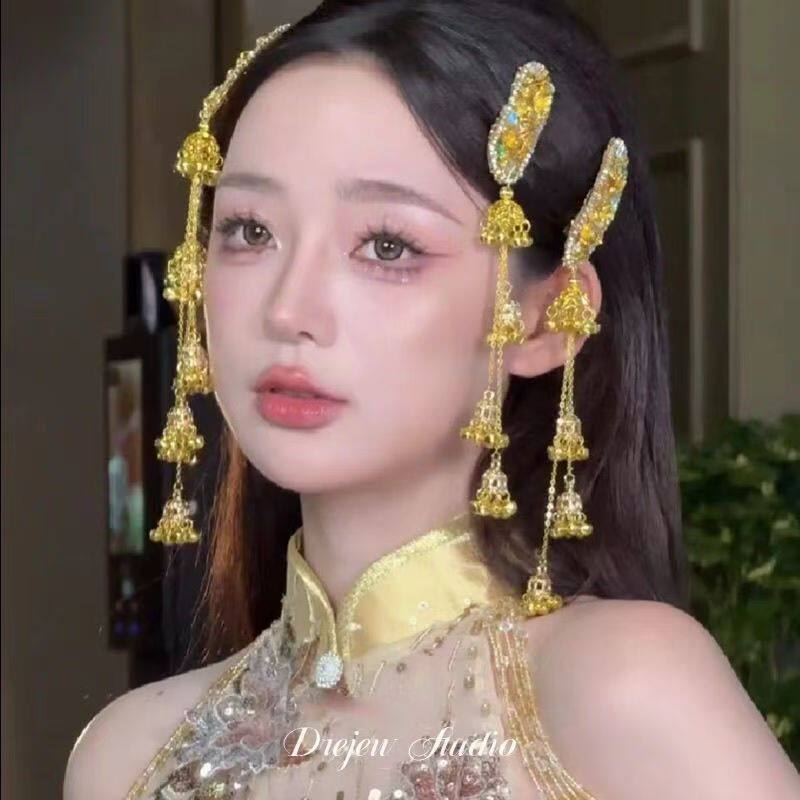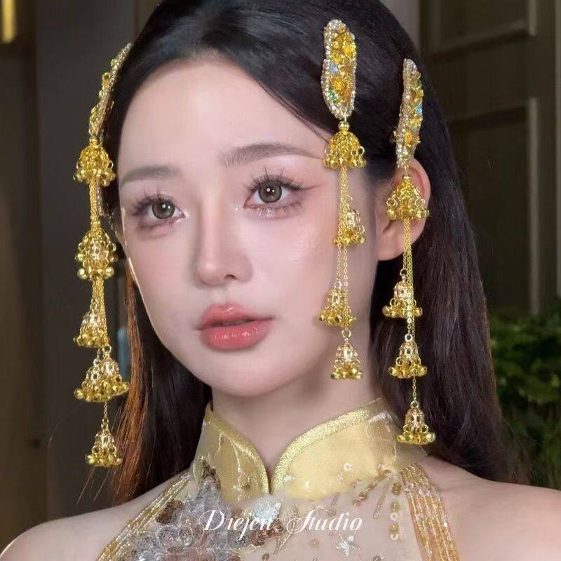网红同款流苏边夹铃铛发夹女侧边刘海夹风铃头饰新中式发饰民族风