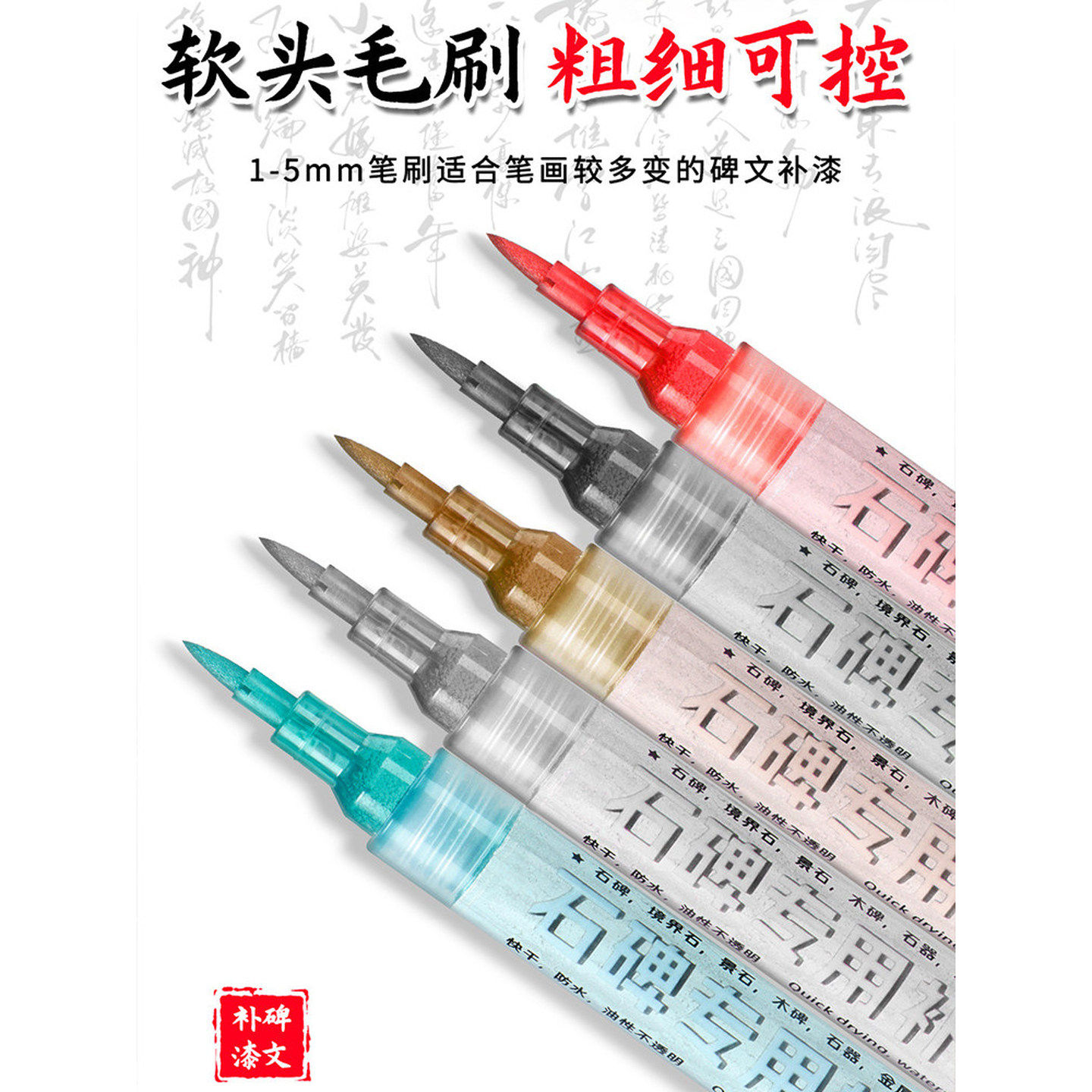 石碑专用补漆笔清明节扫墓描碑金漆碑文墓碑油漆笔红色黑色防水不油性记号笔石牌补漆笔防晒油性笔可擦多色