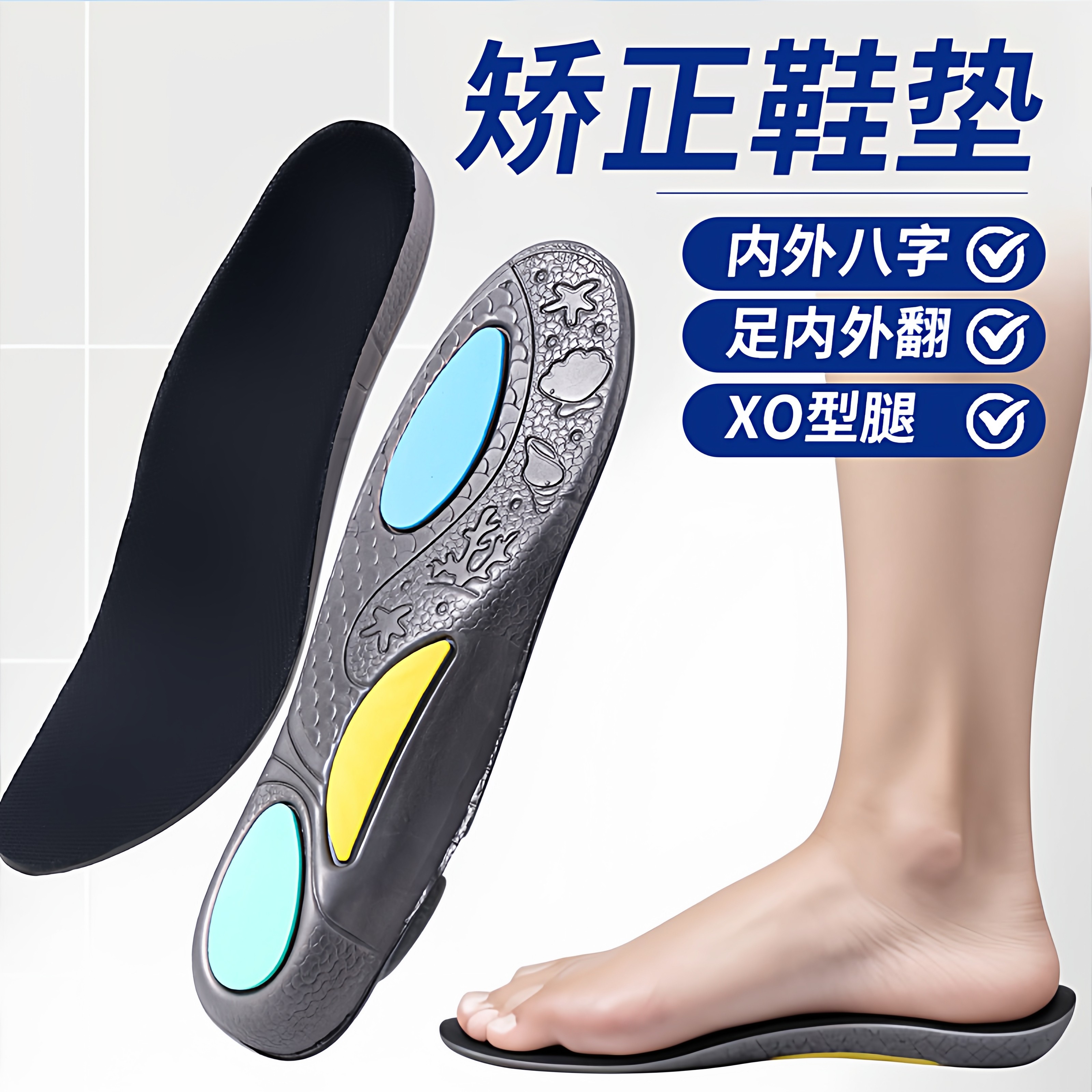 xo型腿型小腿内外翻扁平足鞋垫矫正脚垫直腿神器高足弓支撑鞋垫