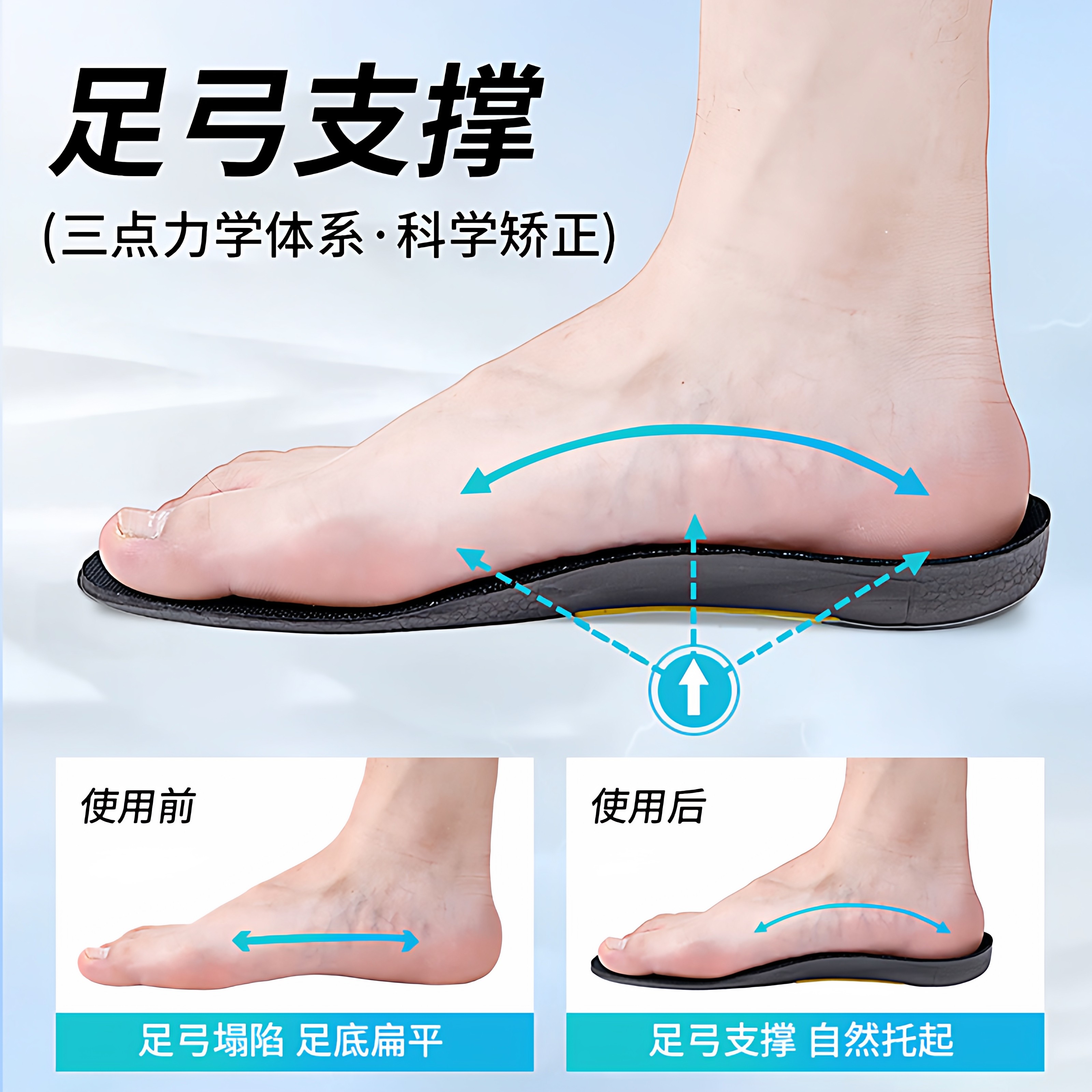 鲸鱼鞋垫矫正扁平足足弓支撑足弓改善运动减震不累脚跑步踩屎感