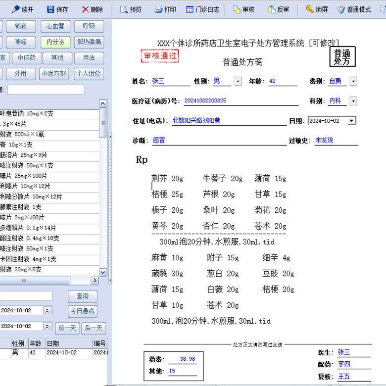 电子处方管理系统诊所药店门诊卫生所中西医电子处方开单打印软件