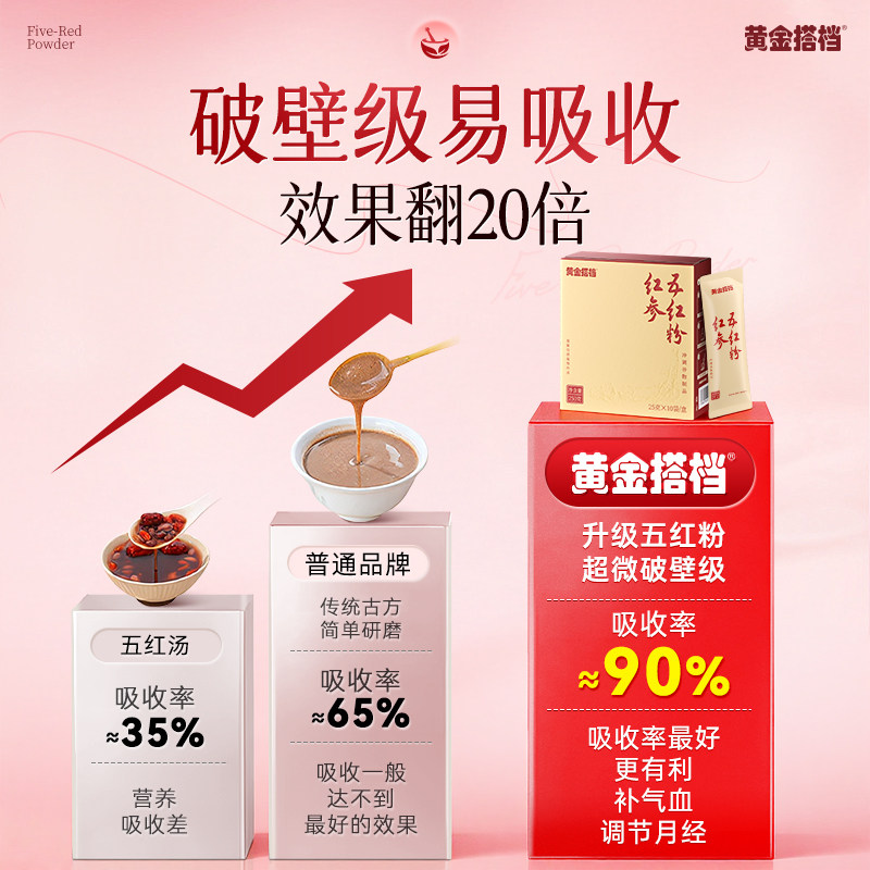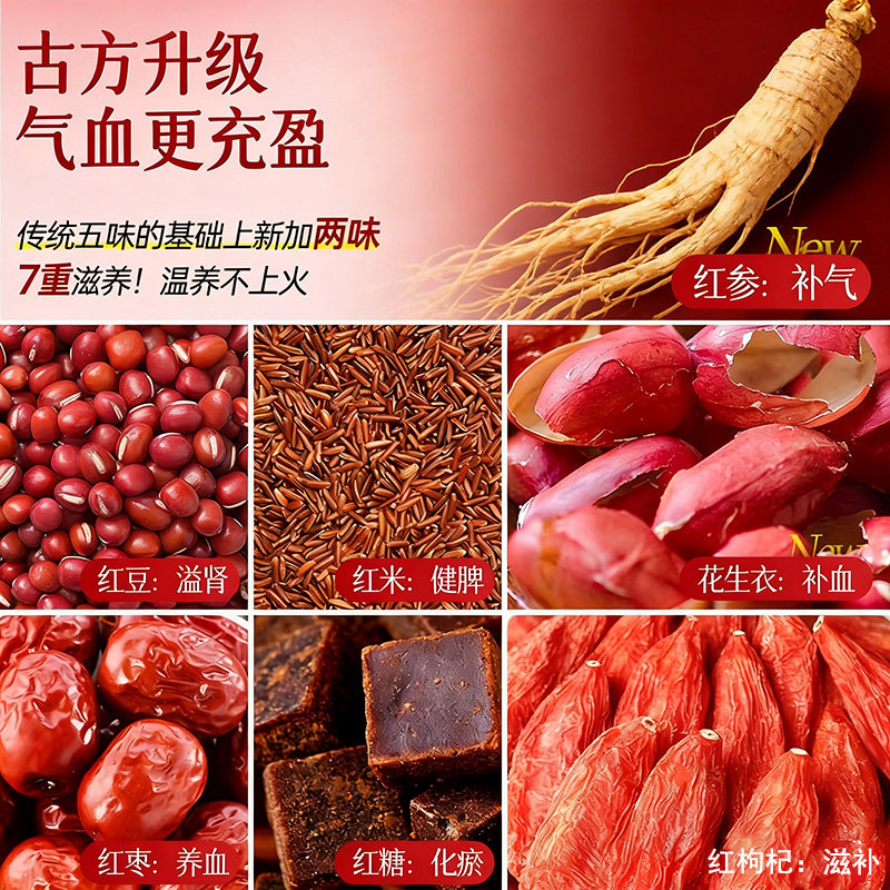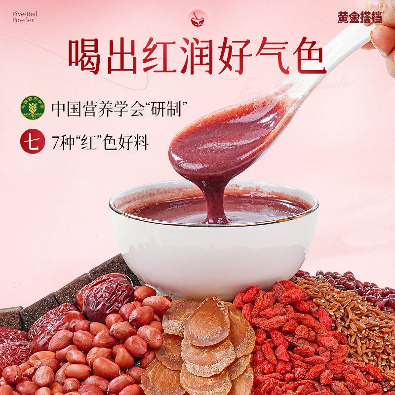 五红补气养血养姨妈红参枣红豆糖米代餐粉黄金搭档官方旗舰店气血