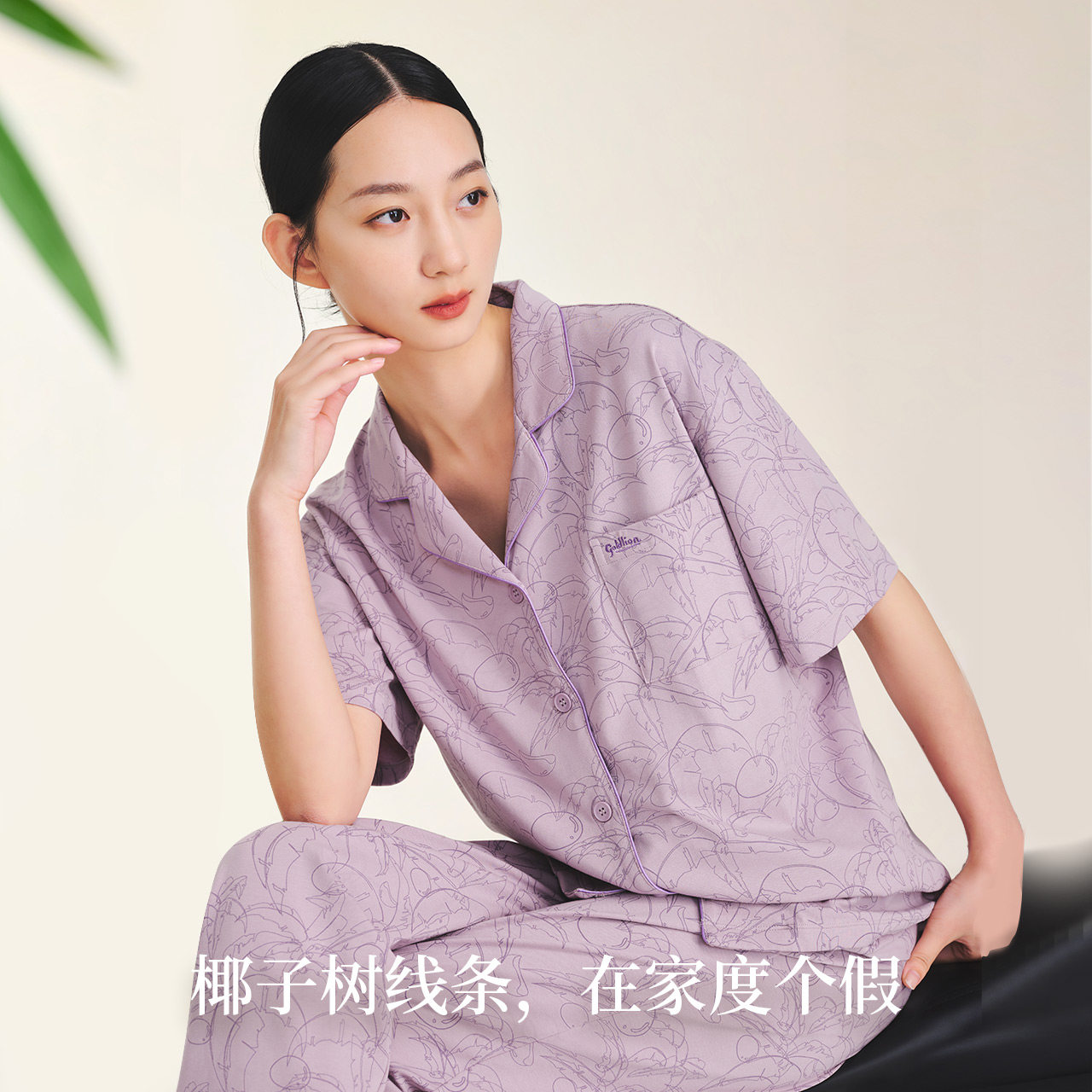 金利来睡衣女夏季纯棉可外穿短袖印花家居服睡衣睡裤套装