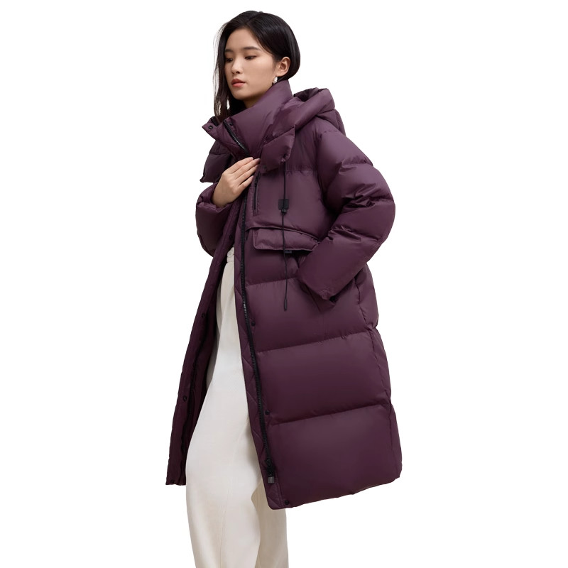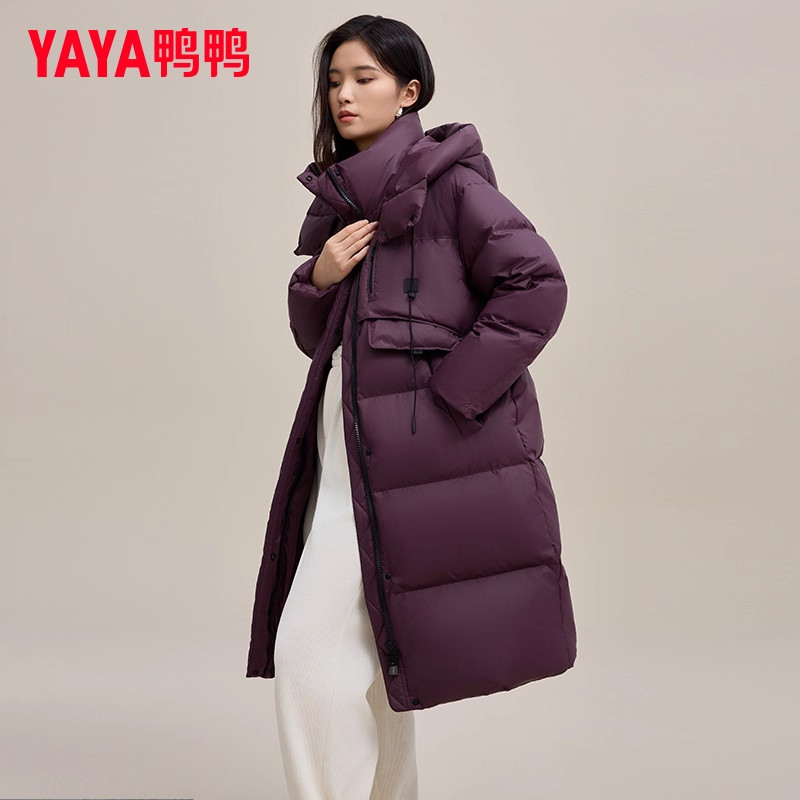 鸭鸭中长款羽绒服女2025冬季新款加厚时尚连帽小个子韩版宽松外套
