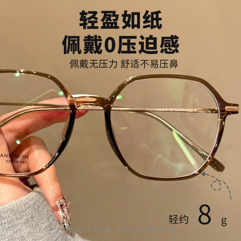 超轻钛架韩系茶色多边框眼镜近视女可配有度数方圆脸素颜眼睛架男