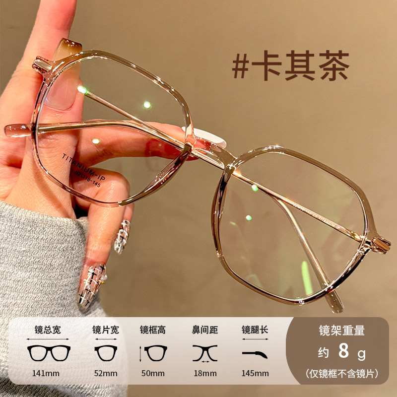 LOHO超轻冷茶色钛架眼镜近视可配度数女防蓝光高级感素颜眼睛镜框