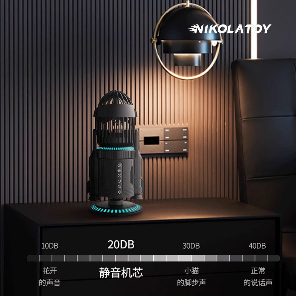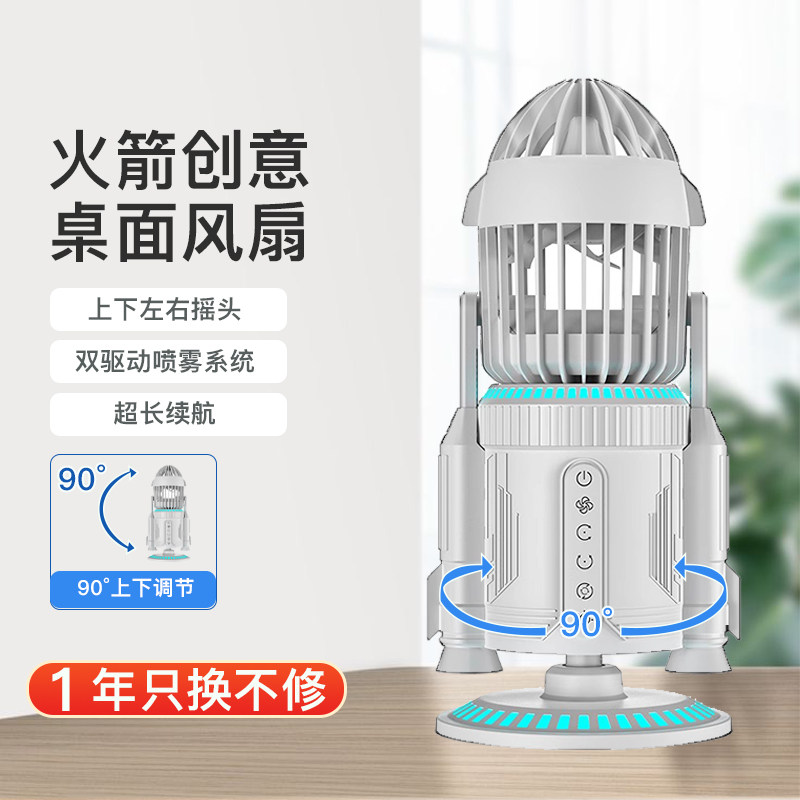 火箭创意风扇办公室桌面摇头喷雾静音usb充电强风力双驱喷雾系统RGB炫彩静音多功能风扇送男友实用毕业季礼物