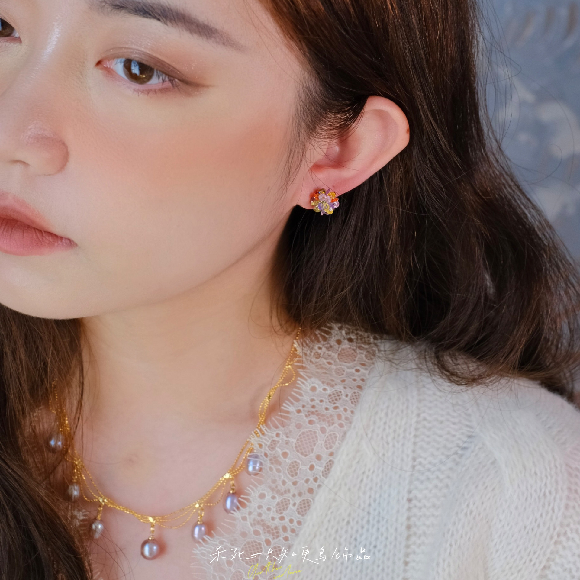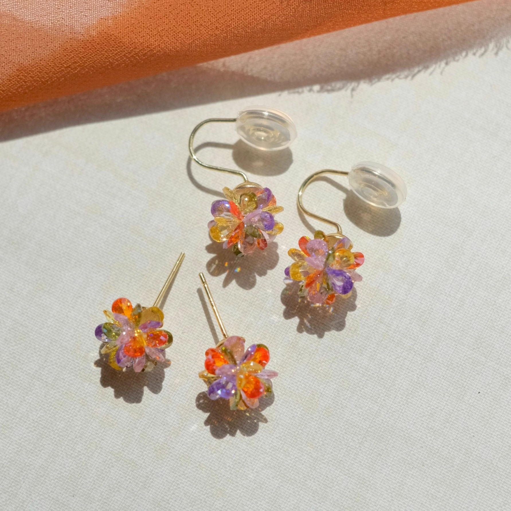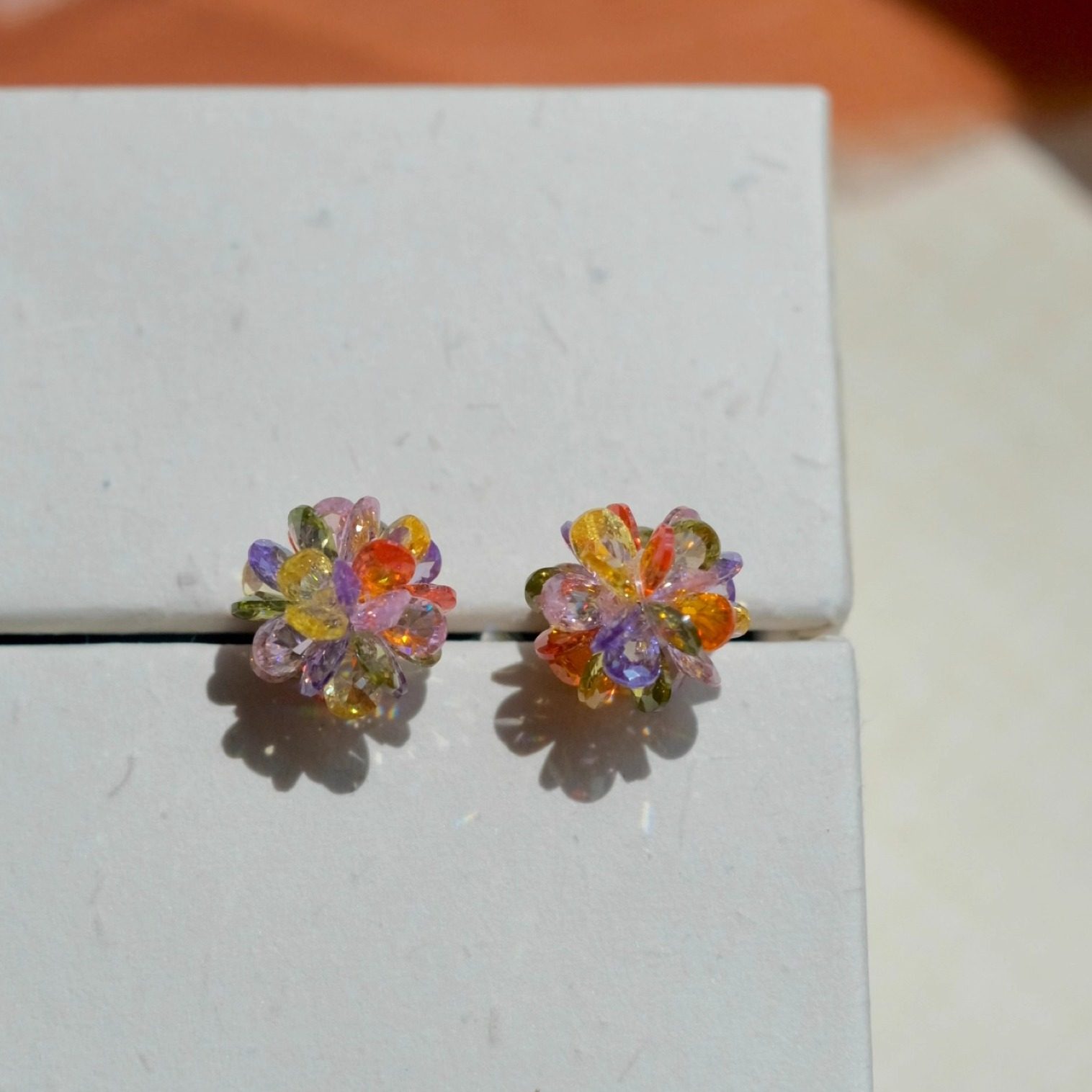 《花漾糖珠》清新简约精致高级感彩色多巴胺水晶花球耳钉耳夹耳饰