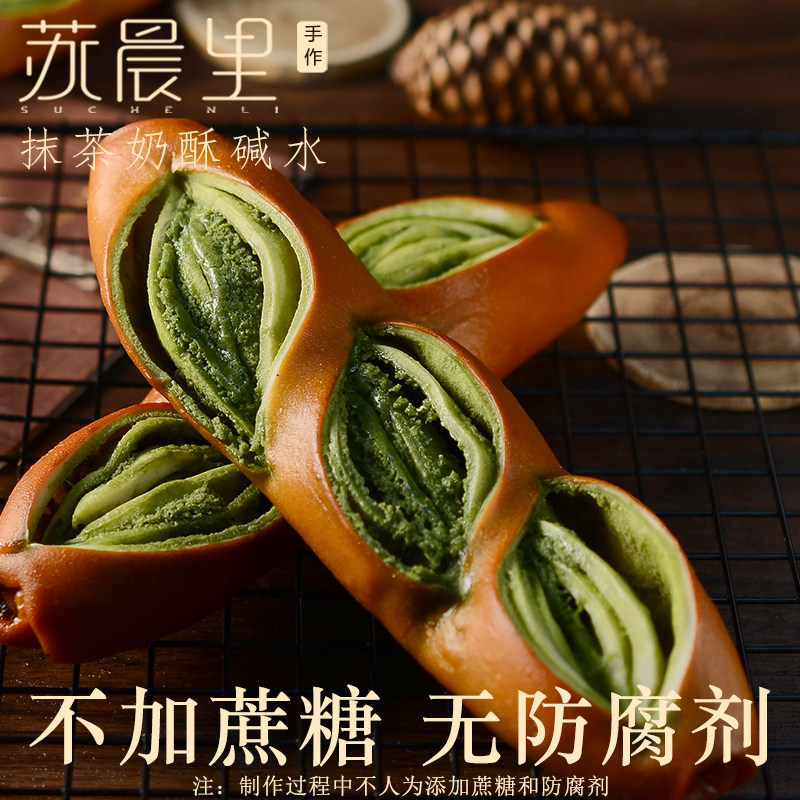 2个装 苏晨里手作面包抹茶奶酥碱水棒德式面包早餐主食面包无蔗糖