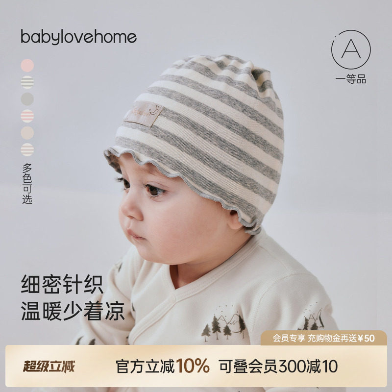 babylove婴儿胎帽春秋男女宝宝护囟门帽新生儿条纹帽子满月包头帽