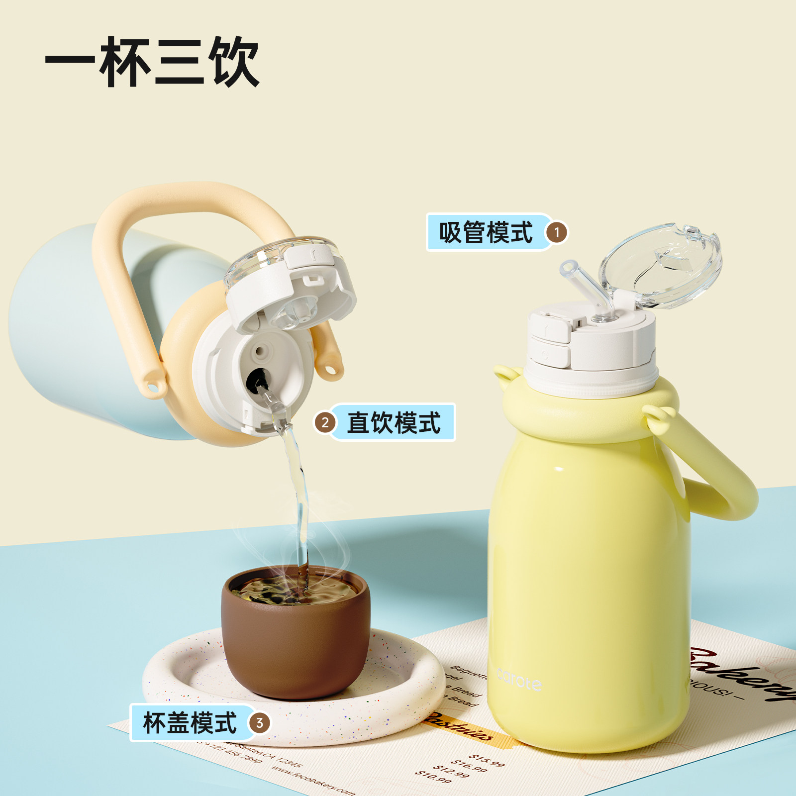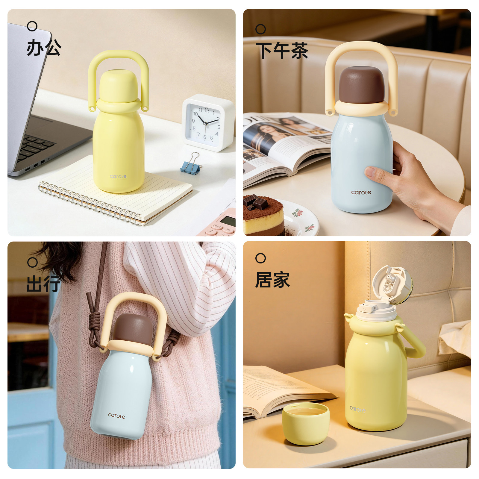 卡罗特保温杯女生高颜值大容量不锈钢手提便携吸管水杯户外出杯子