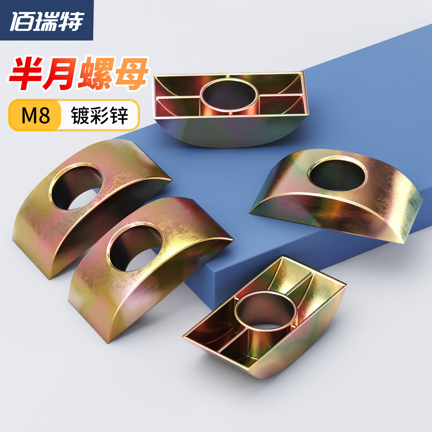 半月垫/半圆垫/半月螺母/大班台连接件/家具四合一合金月牙垫M8