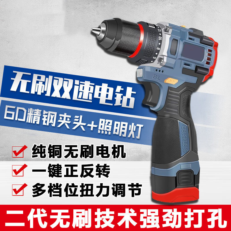 无刷手电钻手枪钻充电式锂电工具多功能电转冲击钻家用电动螺丝刀