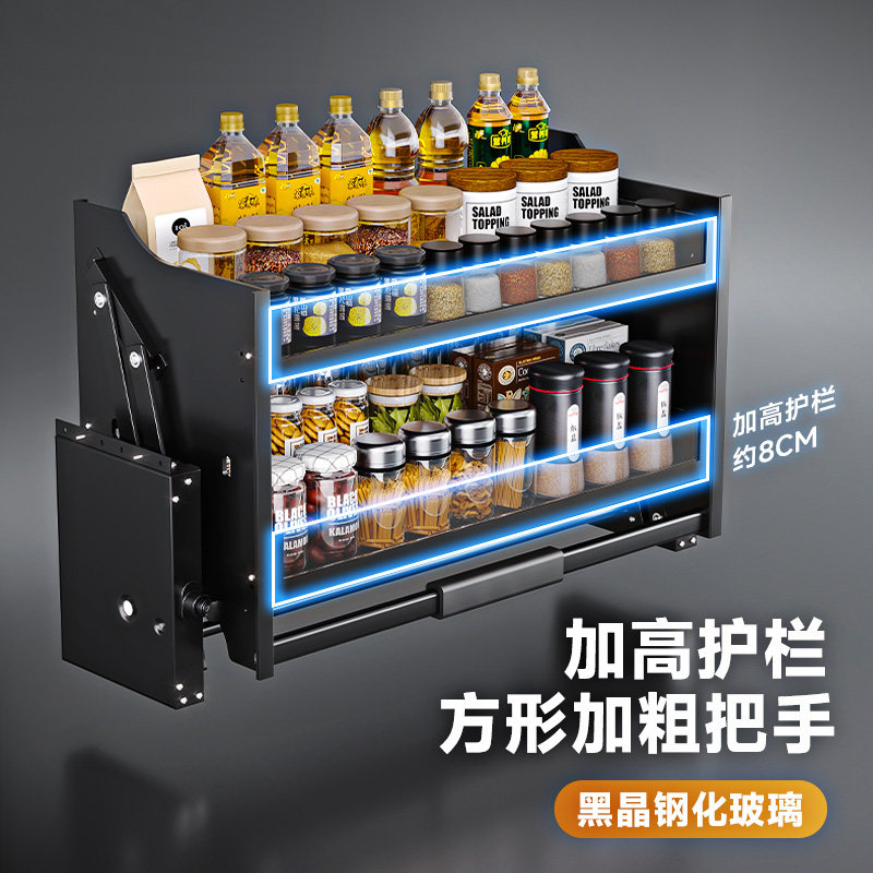 厨房吊柜升降拉篮橱柜上下调料调味篮下拉式厨柜置物架铝合金双层