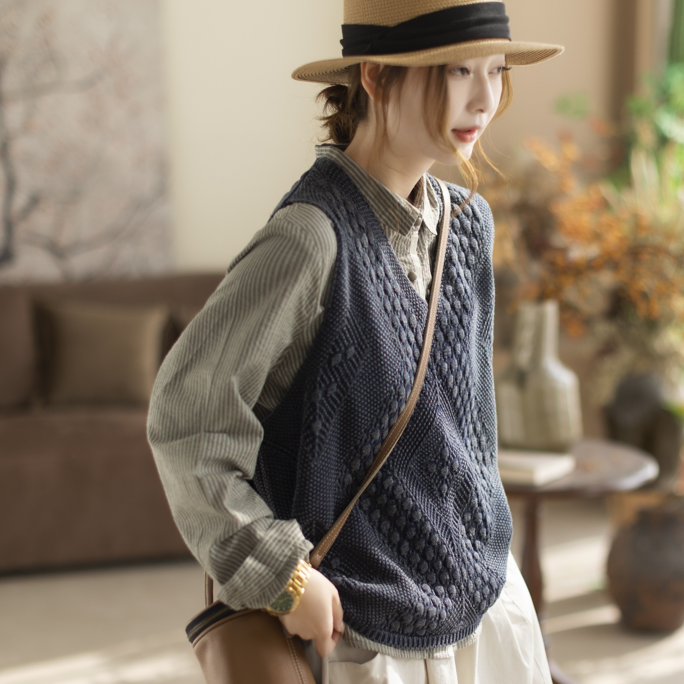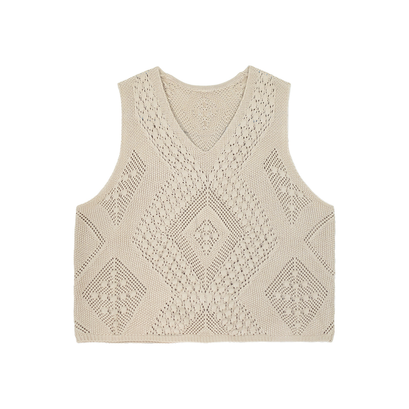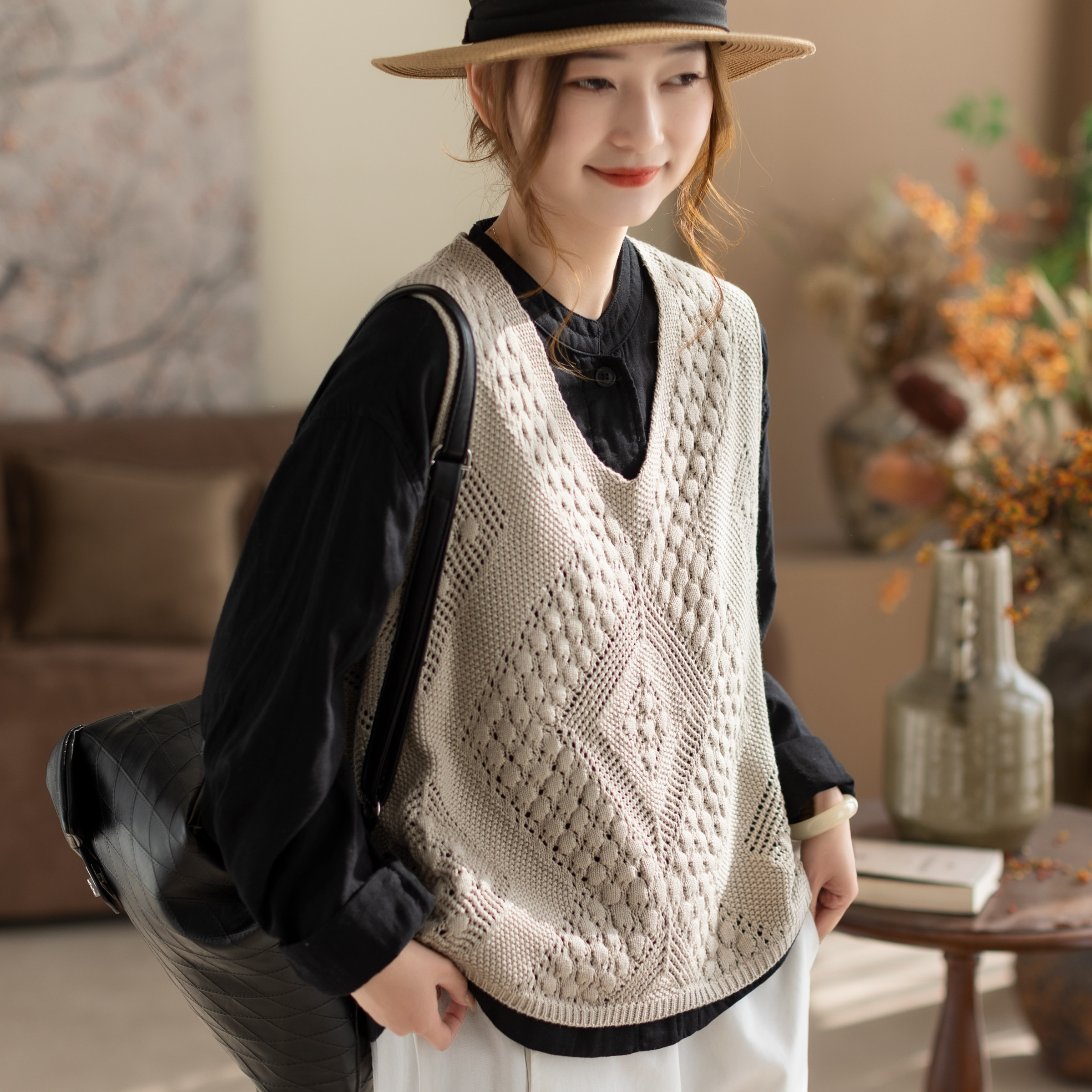 咖咪羽针织马甲女春秋新款无袖休闲坎肩棉线镂空流行女装上衣马夹