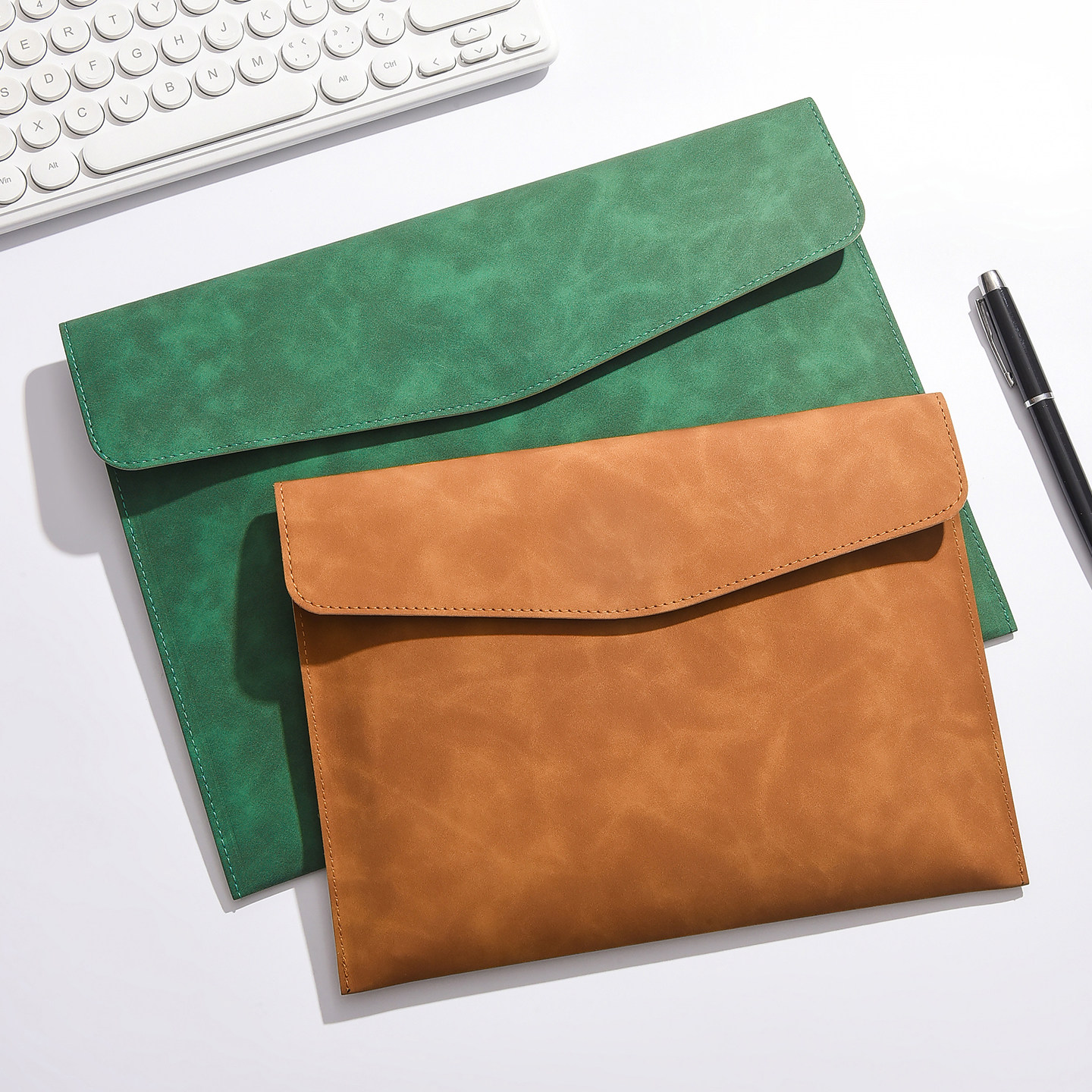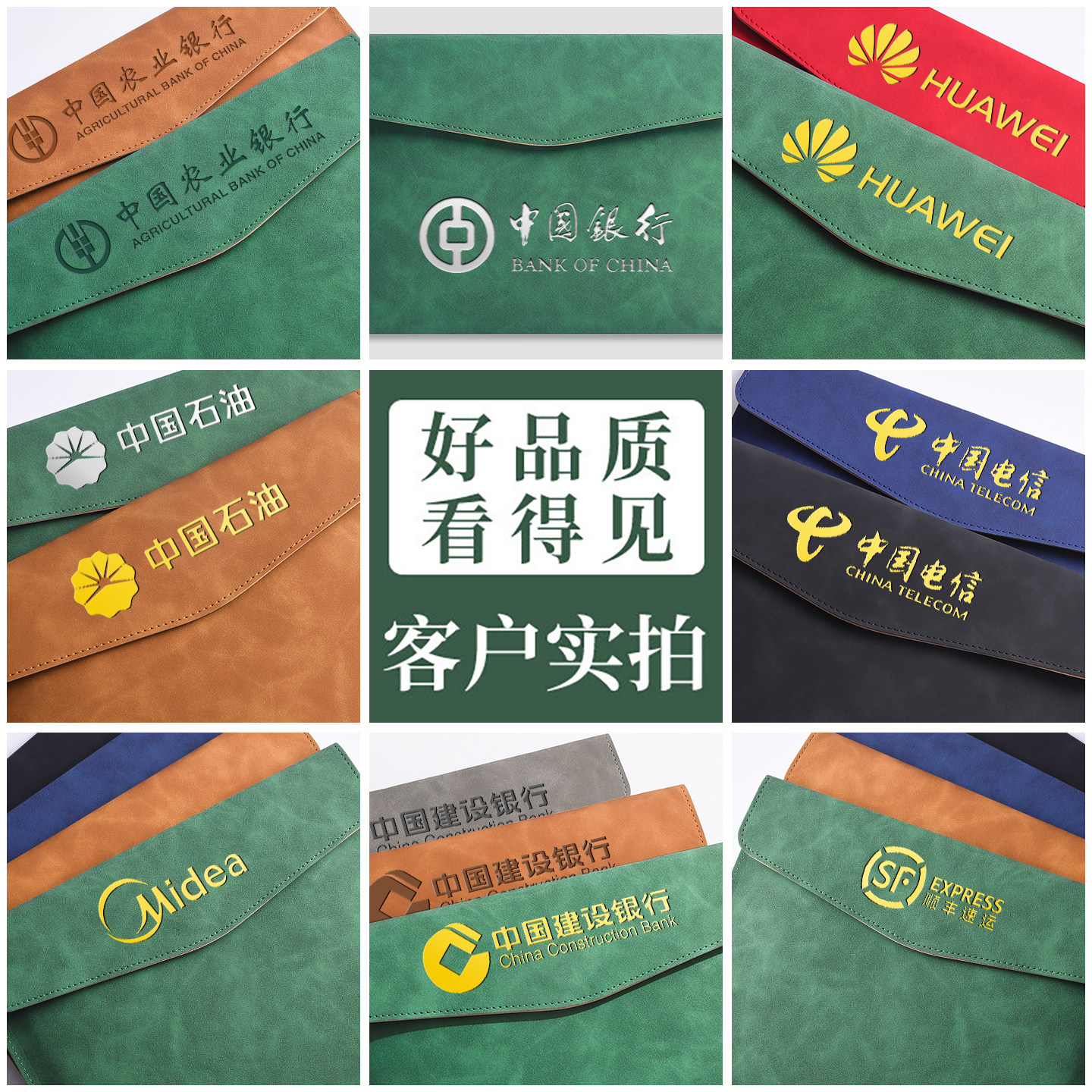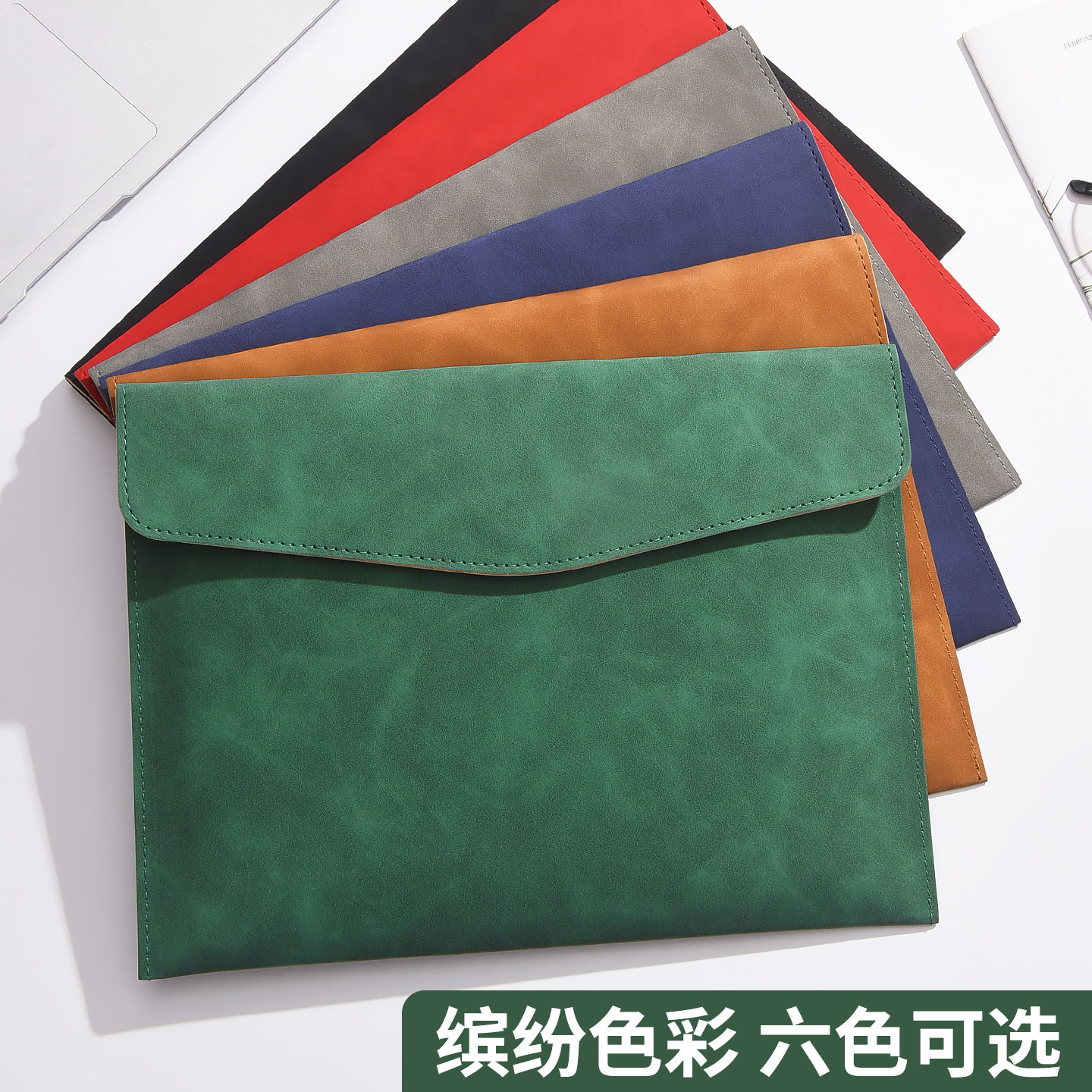 A4档案袋文件夹加厚皮质文件袋防水大容量高级感商务公文袋合同资料票据收纳手提便携按扣文件包定制可印logo