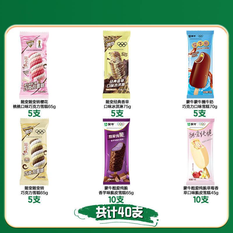 【40支】蒙牛随变冰淇淋经典香草樱花桃桃牛奶巧克力香芋多口味