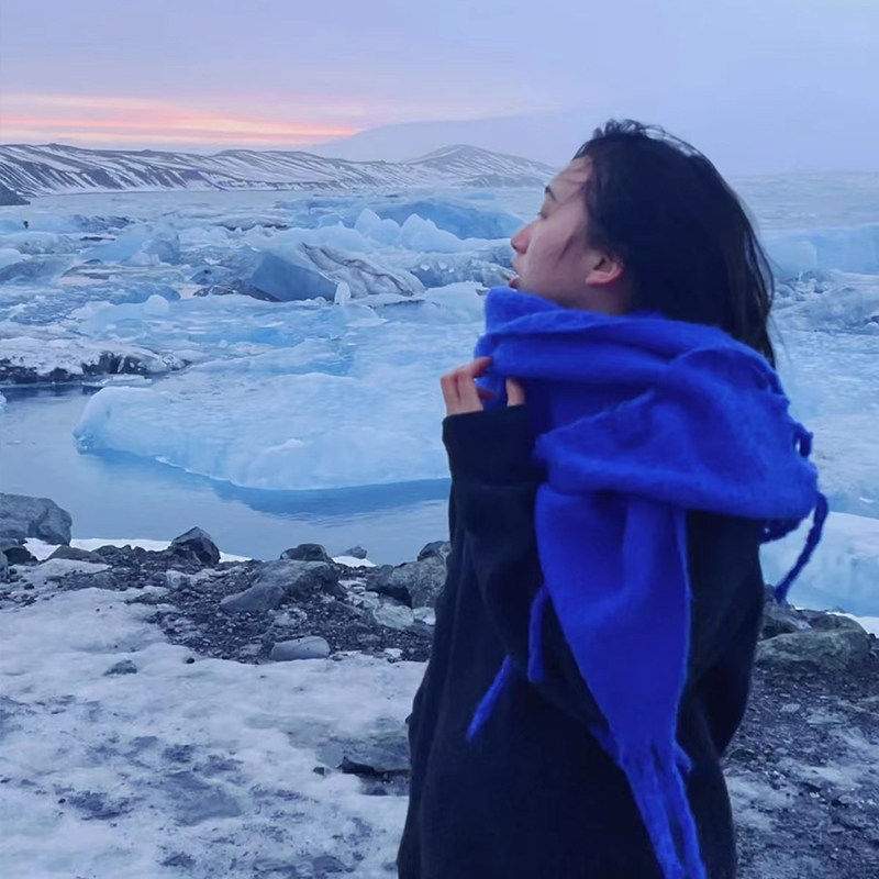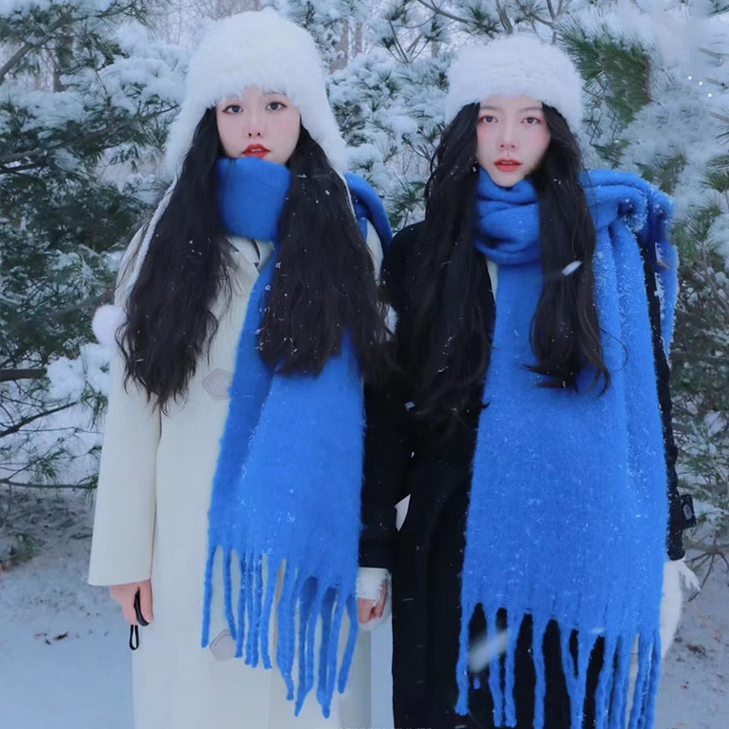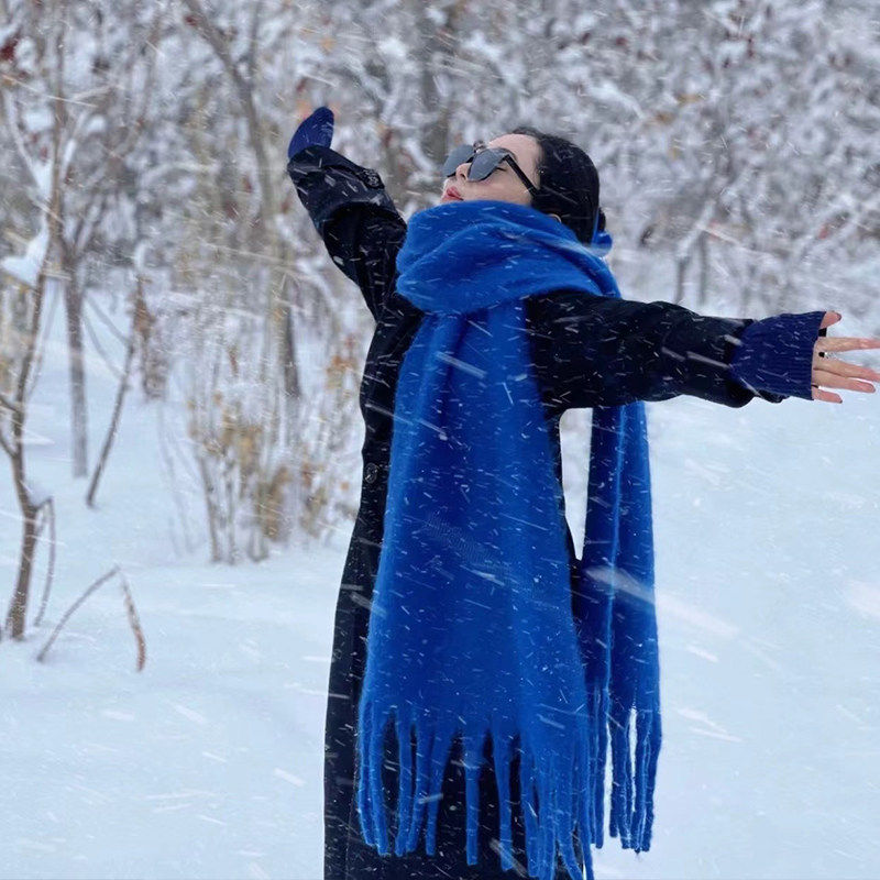 【王俊凯同款】骆驼围巾冬季女新年礼物保暖围脖男针织蓝色围巾