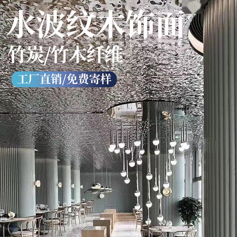 水波纹木饰面板 碳晶护墙板水波纹装饰板竹炭背景墙免漆木饰面