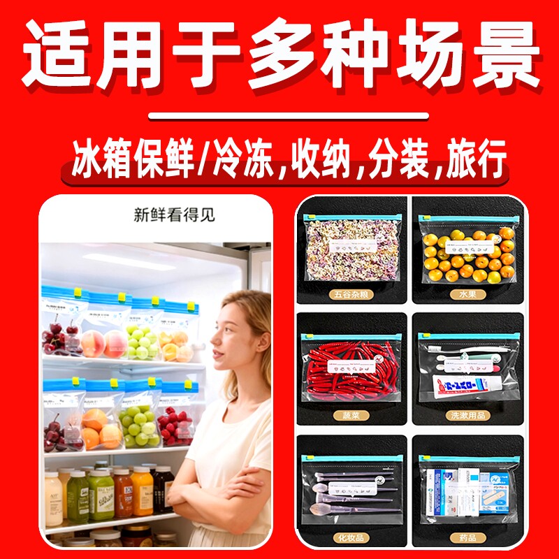 太力保鲜袋食品级家用密封袋冰箱专用带封口塑封自封袋子厨房冷冻
