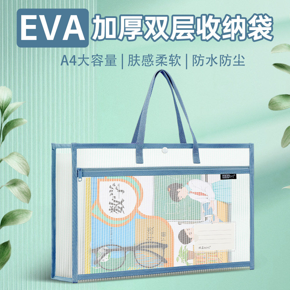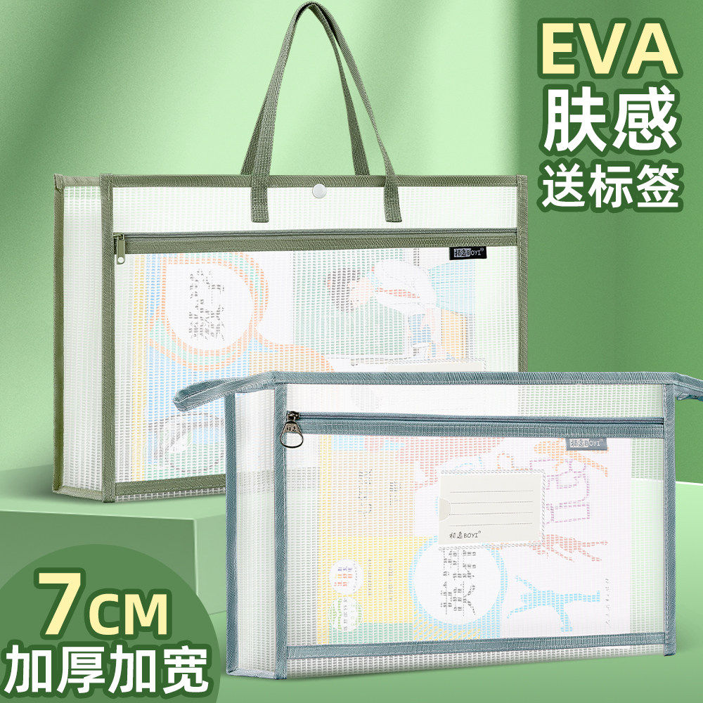 EVA透明网纱A4立体文件袋双层加宽拉链手提包学生办公资料袋大容量防水加厚网状补习袋考试袋透明袋送标签