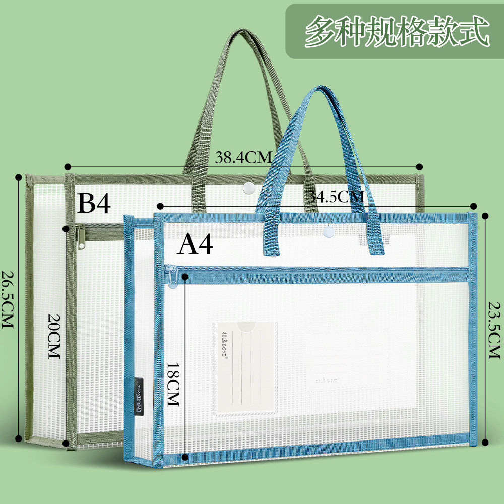 L型科目分类袋手提透明文件袋拉链式网纱大开口学生拎书袋考试