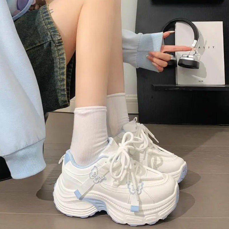 巴布豆女童蝴蝶厚底老爹鞋2026春秋爆款小白鞋韩版百搭运动休闲鞋