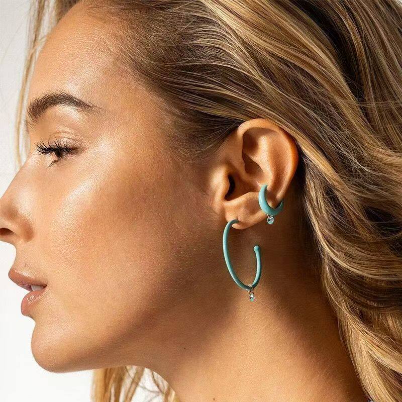 明星梓渝同款多巴胺锆石耳夹小众设计简约百搭高级感无耳洞耳饰女