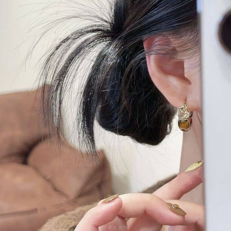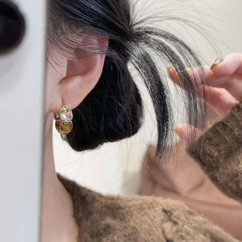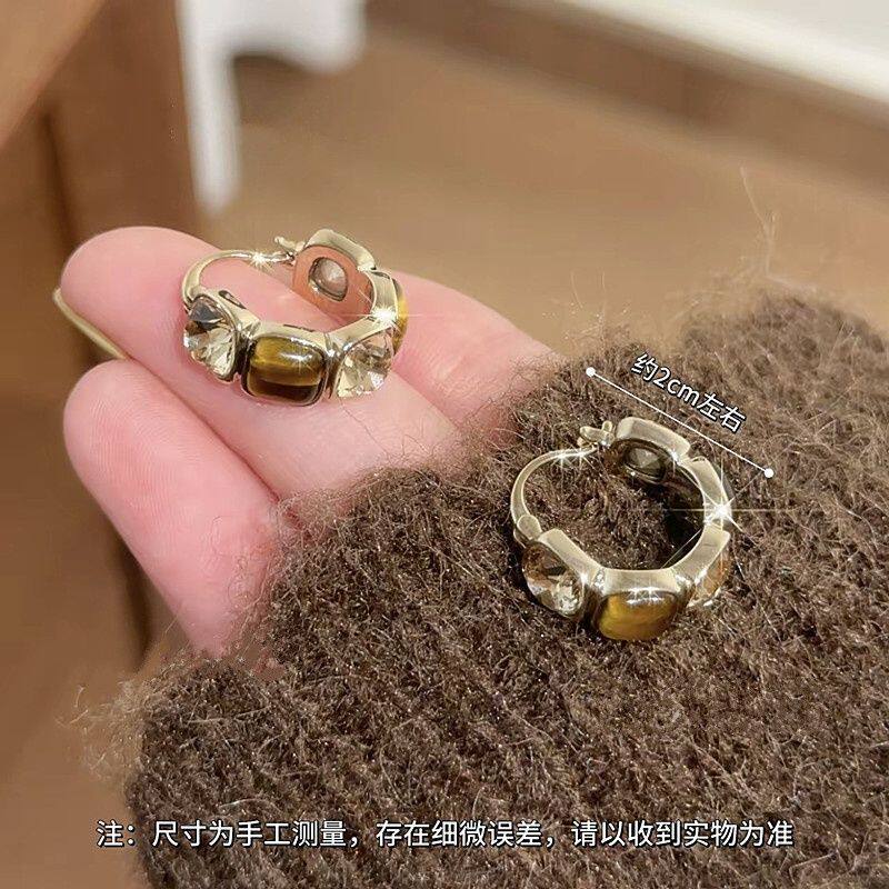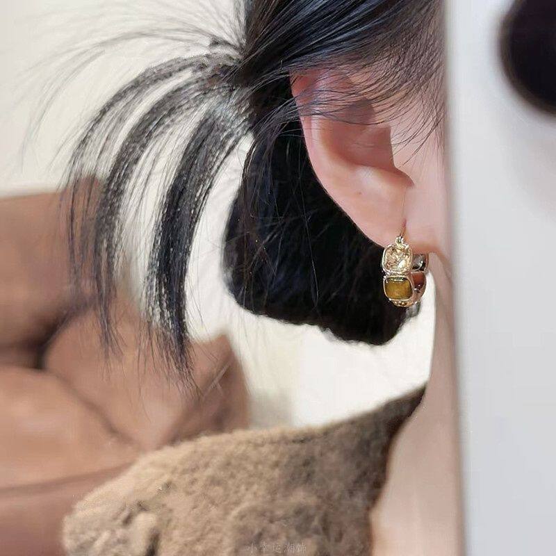 秋冬复古美拉德几何方块琥珀锆石耳扣女轻奢高级时尚气质百搭耳环