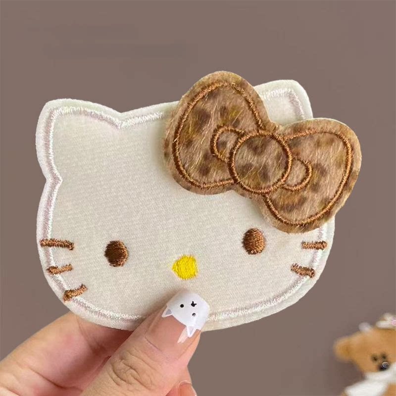 Kitty植绒豹纹刘海贴魔术发卡(蝴蝶结可拆卸) 甜美整理碎发帖发饰