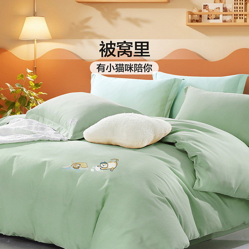 A类床上用品斜纹四件套加厚被套被罩床单2025新款学生宿舍三件套4