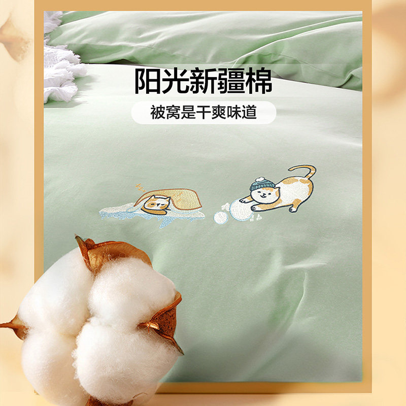 无印良品全棉四件套学生宿舍纯棉卡通儿童被套床单三件套床上用品