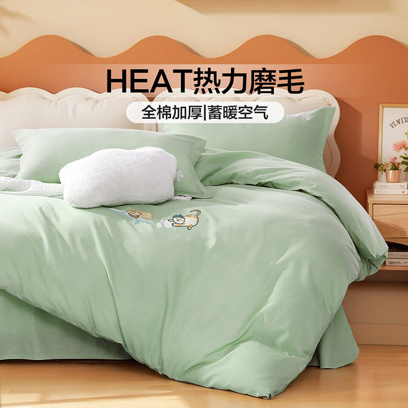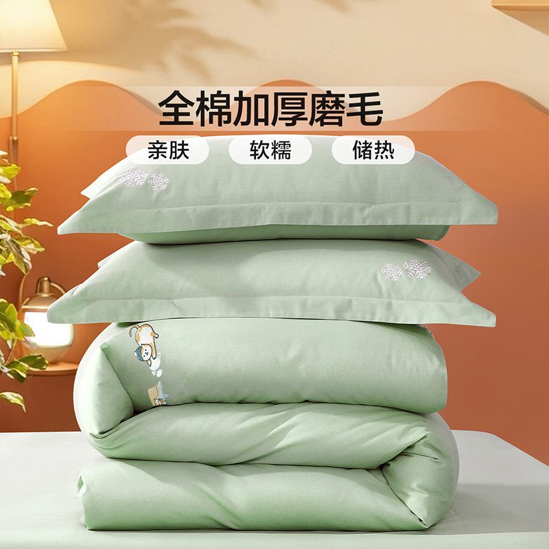 富安娜家纺磨毛四件套加厚保暖被套床单春秋纯棉全棉床品套件