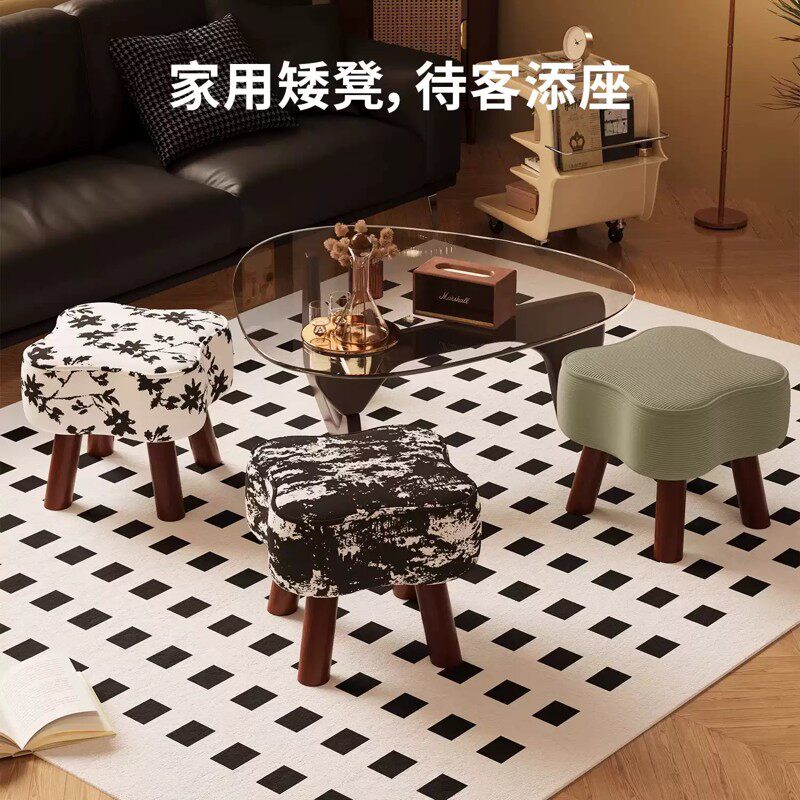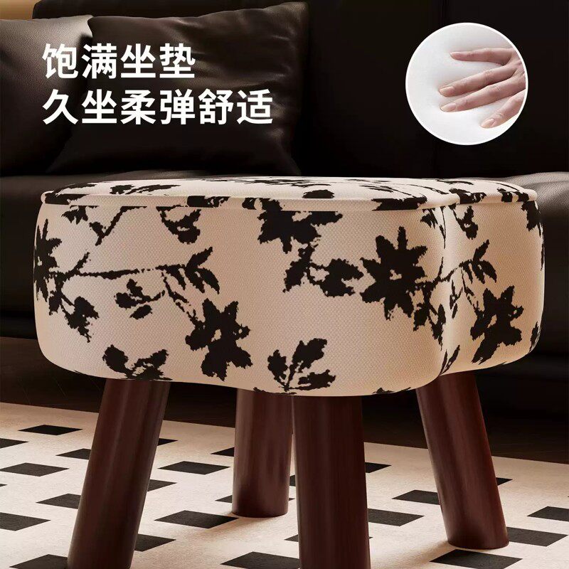 凳子家用矮凳客厅沙发凳实木板凳换鞋凳创意软包坐凳木凳久坐可爱