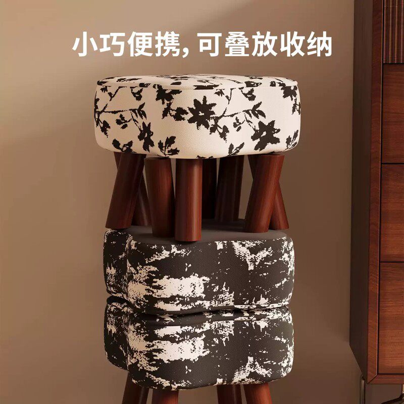 实木凳子家用可叠放软包板凳客厅木头矮凳简约现代小方凳餐桌椅子