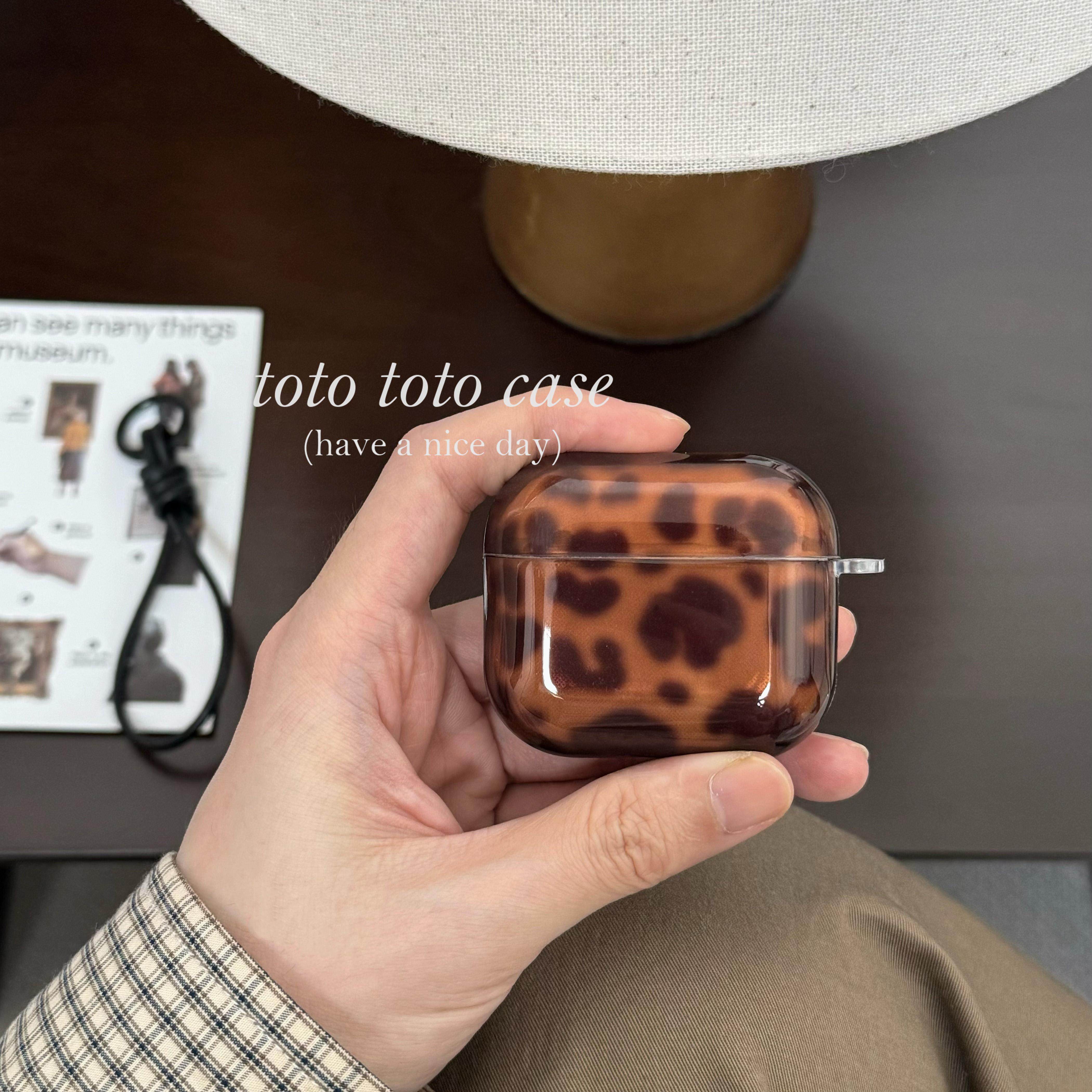 复古ins半透琥珀色豹纹Airpods4代耳机套小众皮质挂绳适用苹果3代/pro2新款保护套Airpodspro3无线保护壳新款