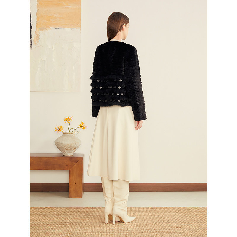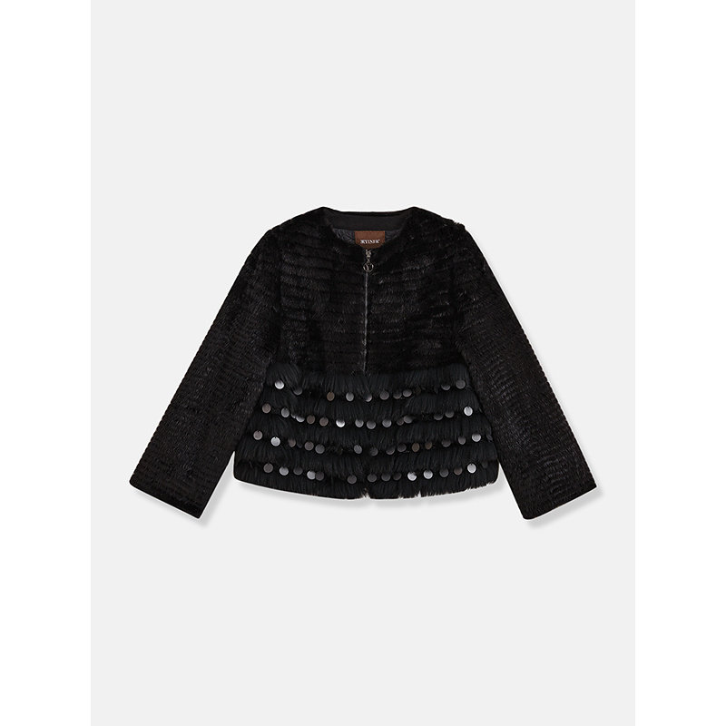 YINER音儿专选2025秋季新款优雅水貂毛拼接狐狸毛流苏短皮草外套