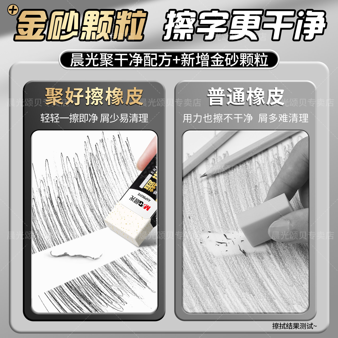 晨光聚好擦橡皮擦无屑超干净小学生专用幼儿园无毒不留痕金砂像皮初中生2b考试专用一年级儿童美术高颜值象皮