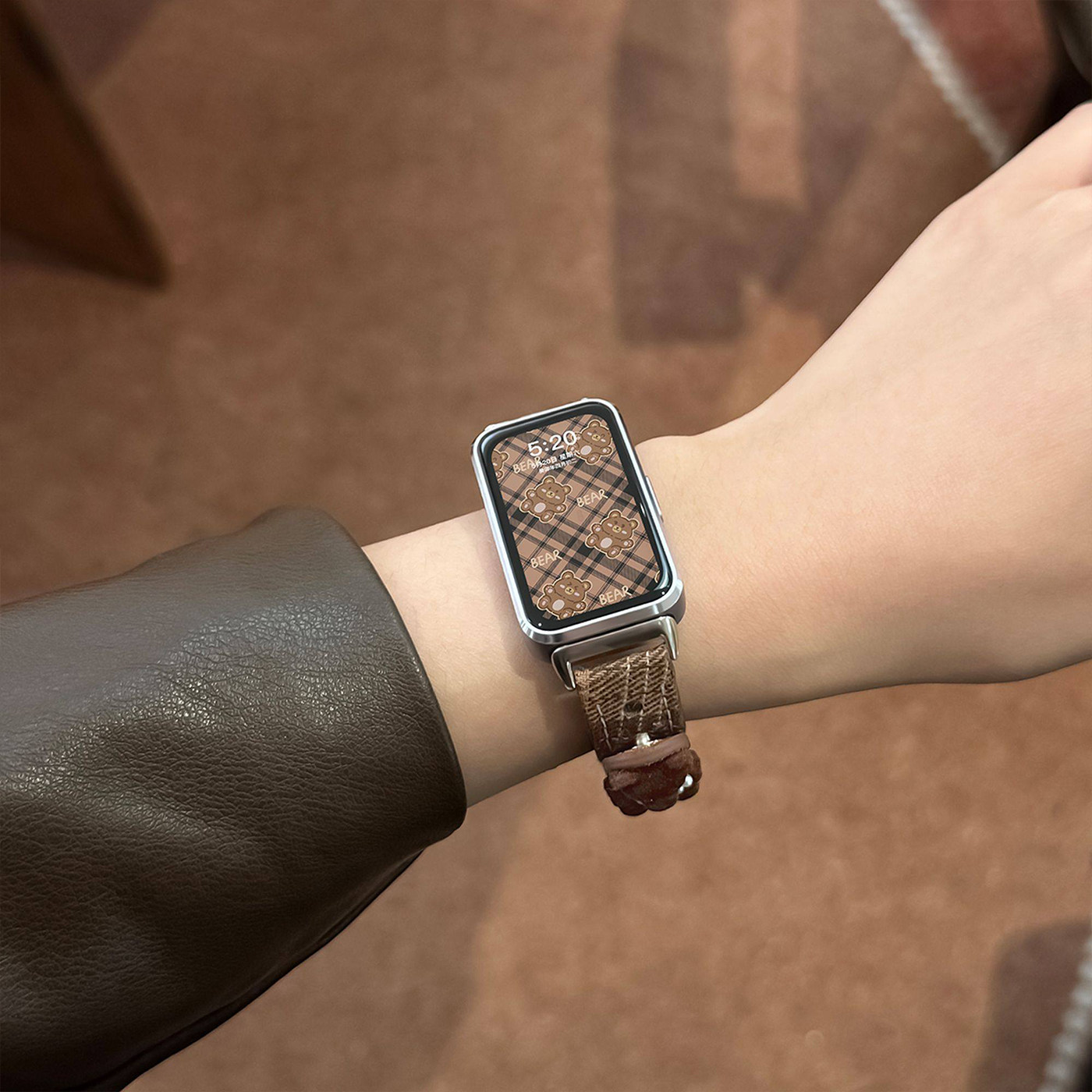 适用于华为手环11表带10/9/8透气帆布格纹pro小熊荣耀10/9时尚小众高级腕带Huawei创意智能band运动配件watch