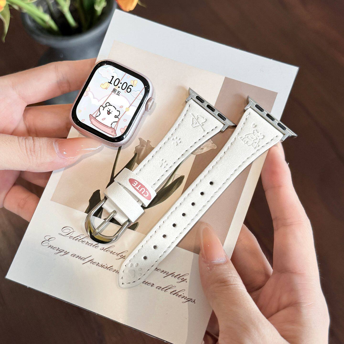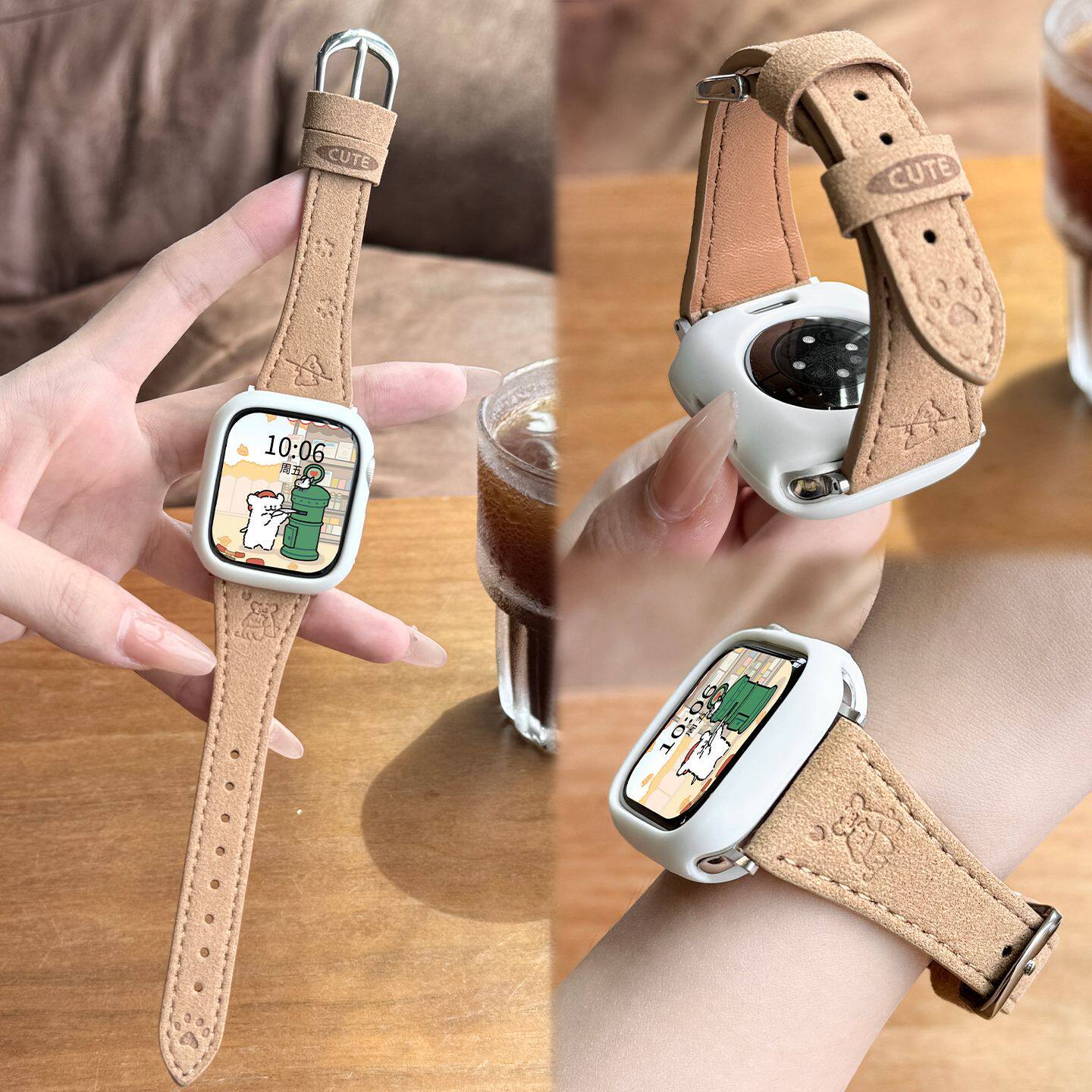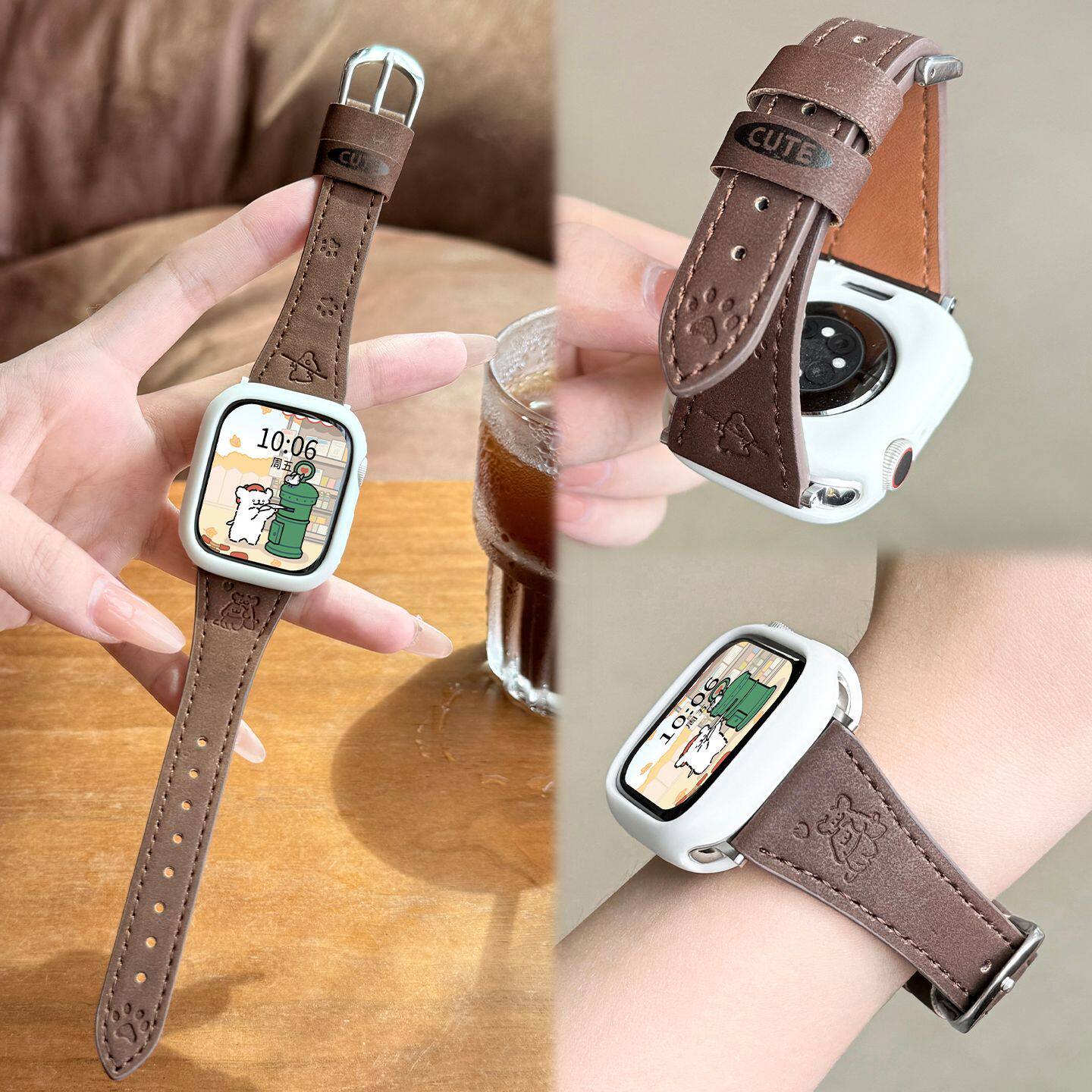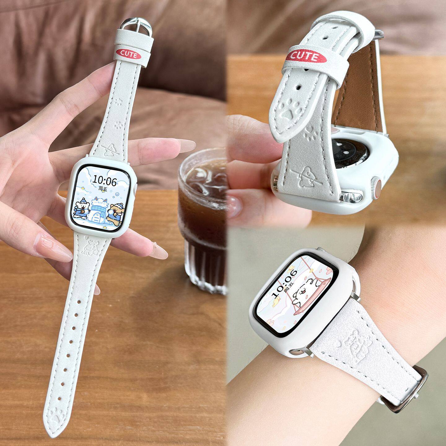 翻毛皮小狗印花适用iQOOwatchgt2表带绒面vivogt2秋冬棕色s11/10腕带小米手环8pro华为fit4氛围感白色粉色
