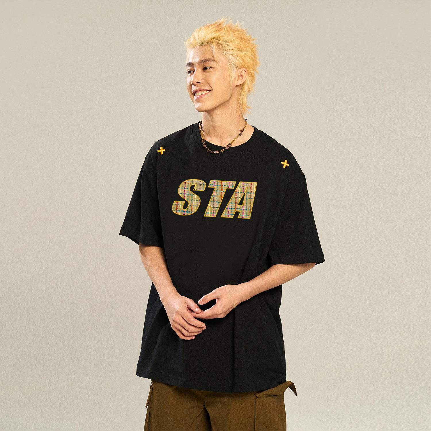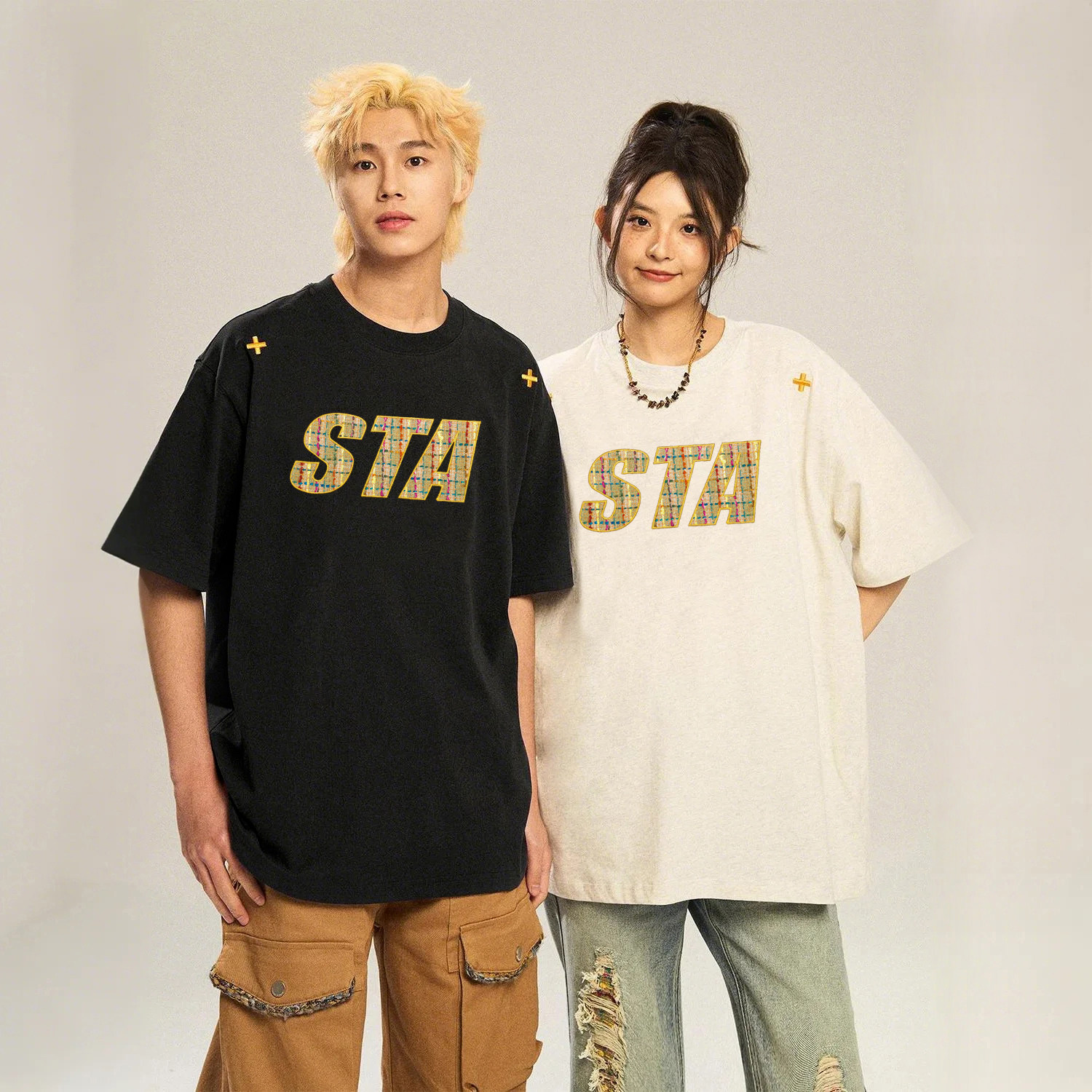 STA旗舰店贴布刺绣美式潮牌复古男女短袖夏季重磅纯棉情侣宽松T恤